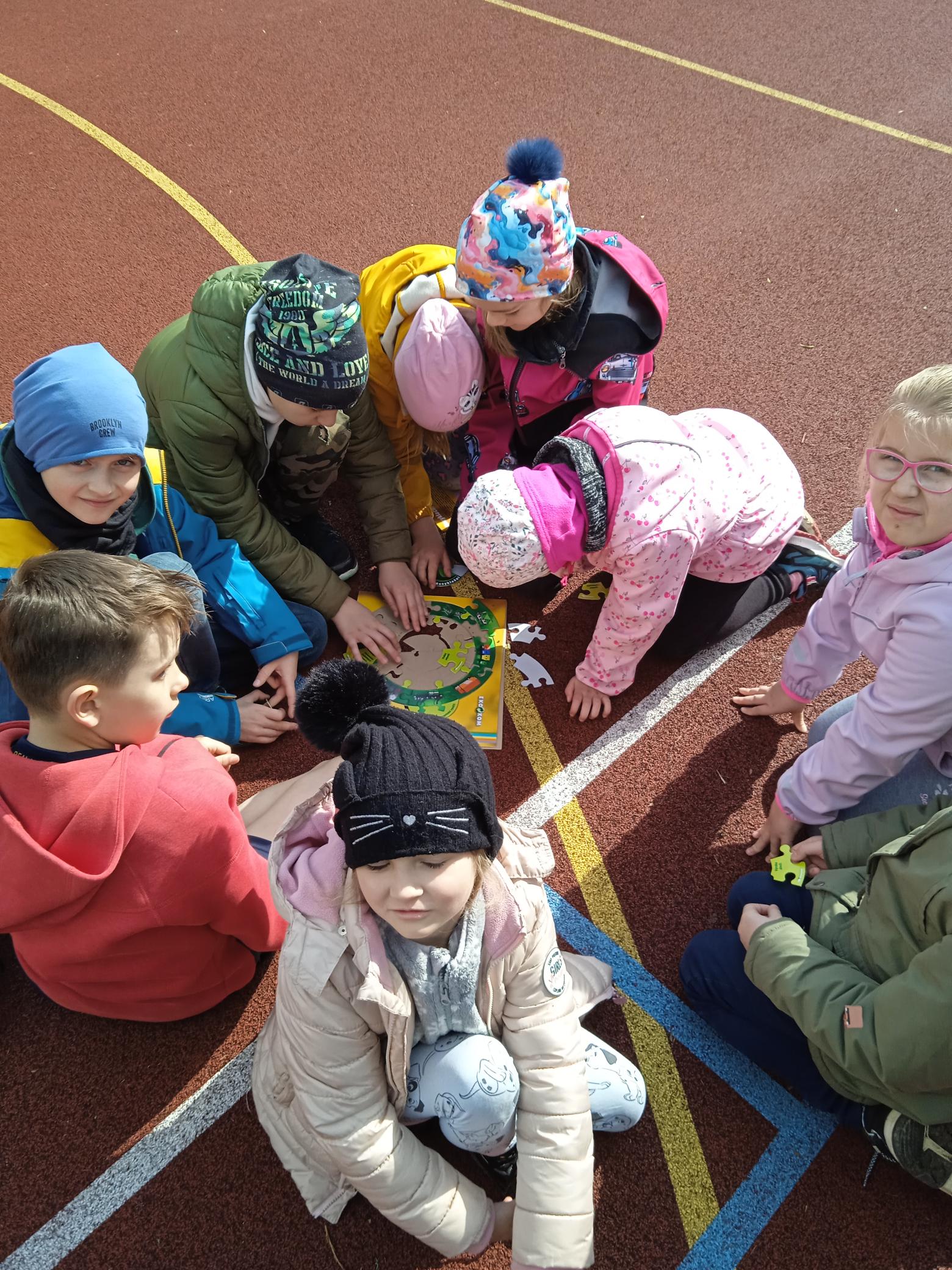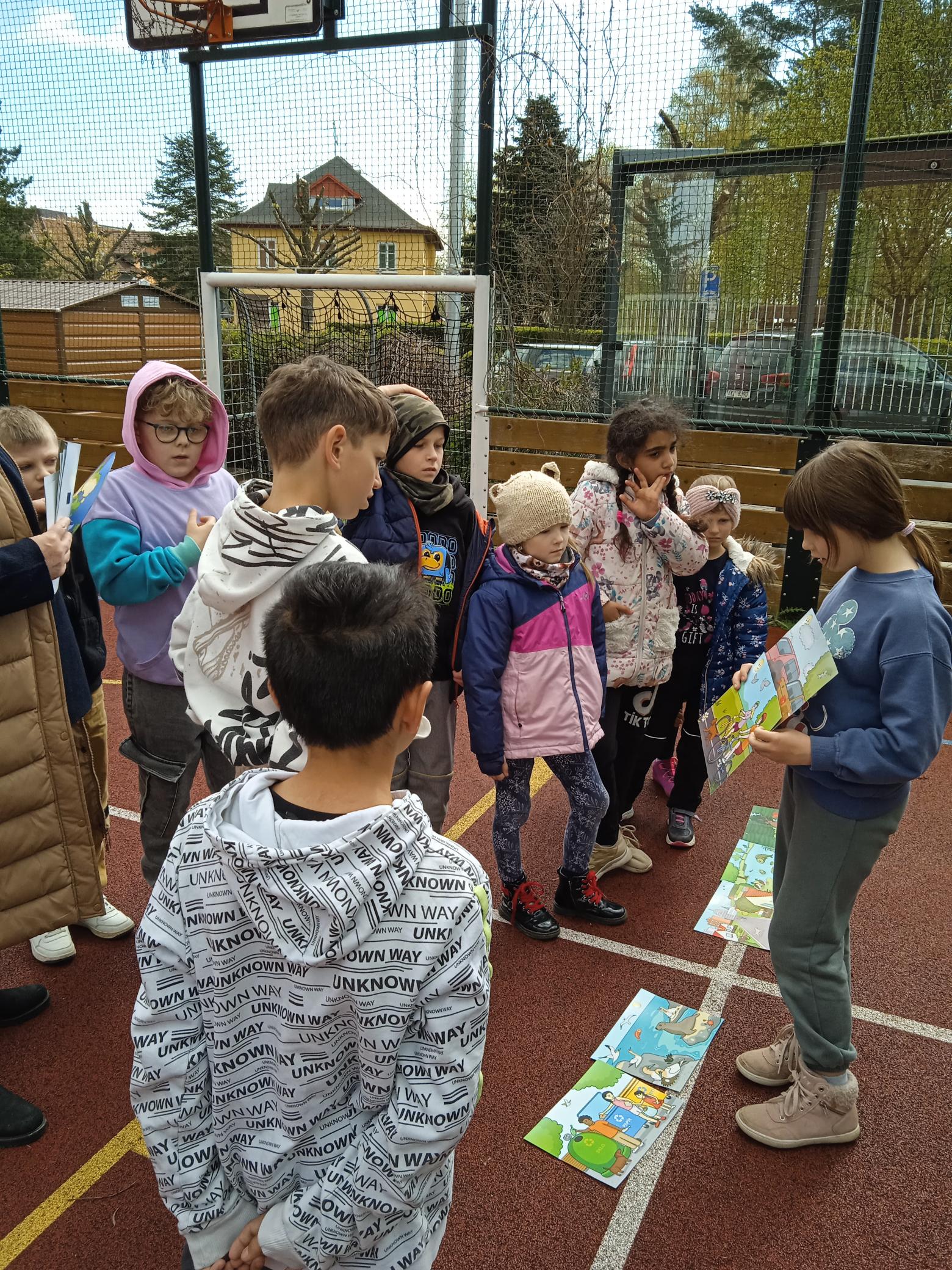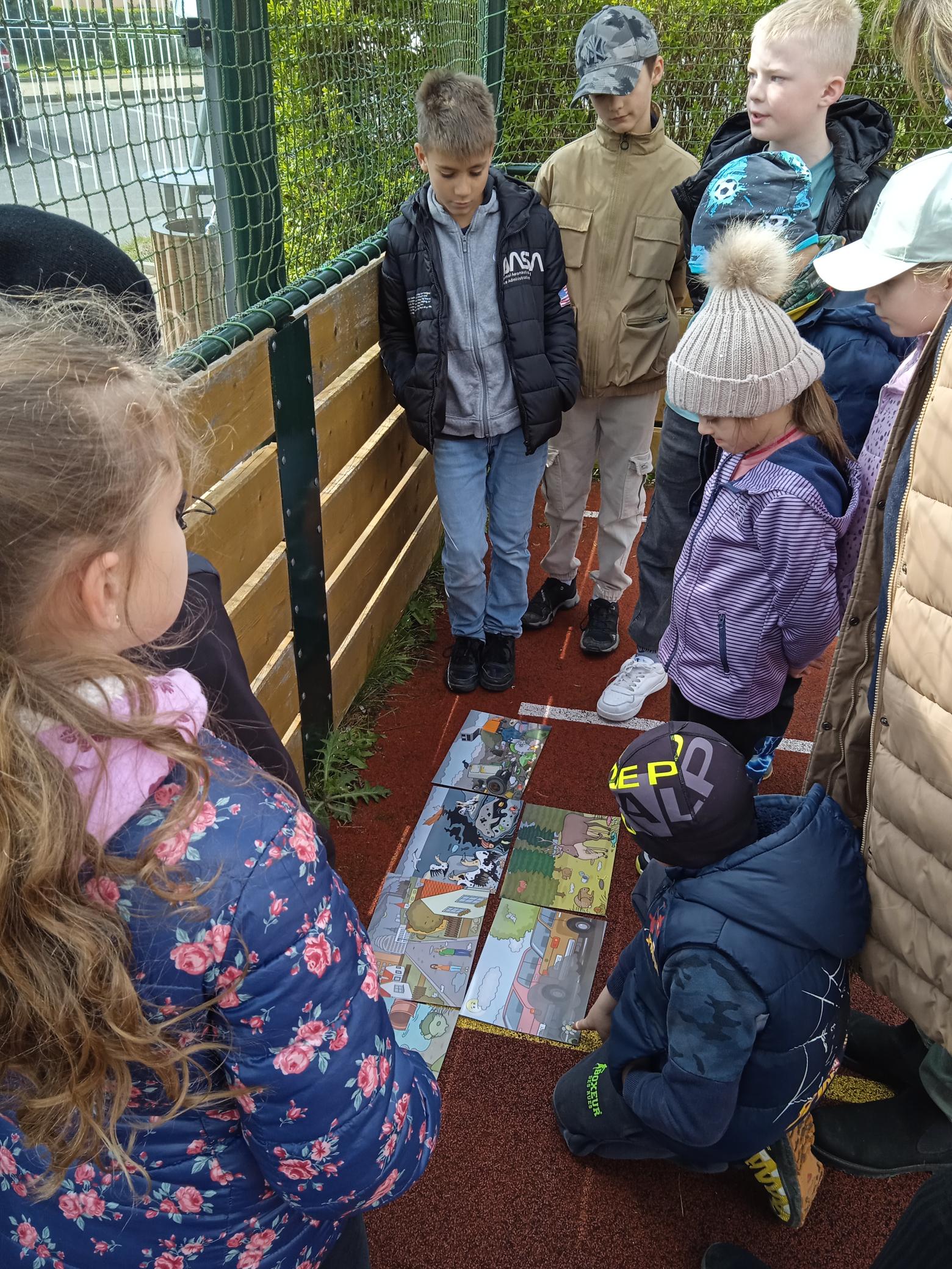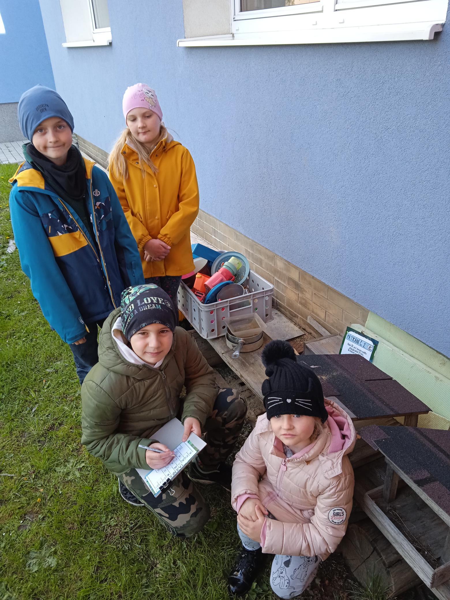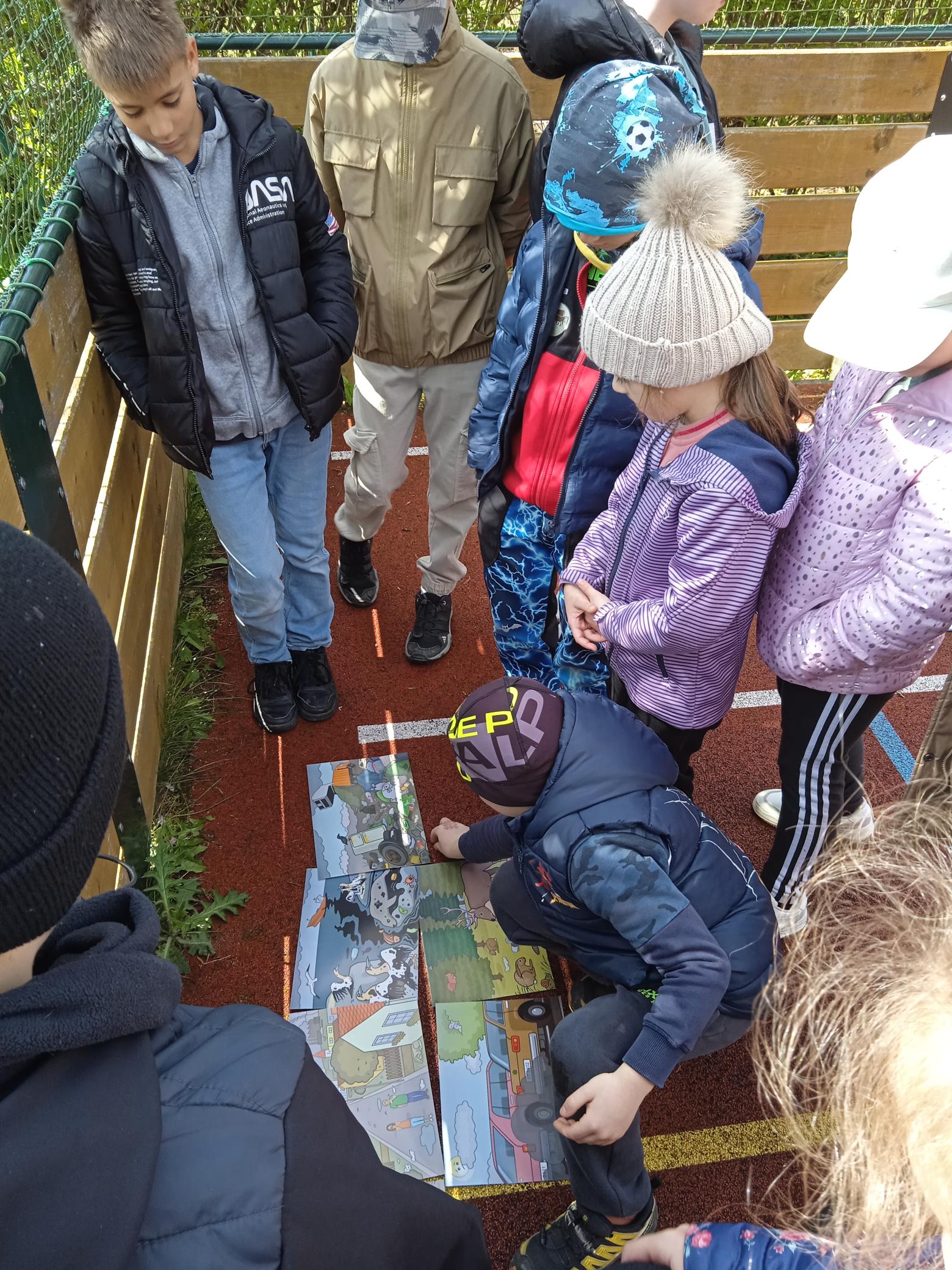 Oslavy probíhaly ve třídách a završili jsme je v pátek 26. 4. Pátračkou ke Dni Země. Smíšené skupinky se vydali na hledání úkolů a luštění tajenky. Na hřišti si děti vyzkoušely třídit odpad, zkoumaly recyklační kufřík, hledali rozdíly, skládaly recyklační kruh, vysvětlovaly rozdíly zdravé a znečištěné krajiny. Opět jsme prozkoumali, jak se změnil odpad na hřbitově odpadků, který jsme založili v roce 2022.