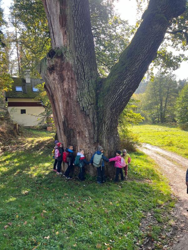 Abychom zachránili domácí skřítky, kteří se ztratili v lese, musíme získat spoustu vědomostí o lese. Les je plný stromů a my jsme si ke Dni stromů ve třídě poskládali puzzle stromu. Pozorovali jsme jeho části, využití a význam. Za všechno, co pro nás stromy dělají, jsme jim napsali vzkazy a vytvořili strom poděkování. Z otisku listů jsme si nakreslili podzimní les. Z listů a kaštanů jsme si navlékli housenku, která nás provází putováním za zvířátky. Ve třídě jsme si vytvořili model lesa. Kořeny jsou důležité pro život stromu. My máme ve třídě i strom třídních pravidel, abychom si připomínali, že každý kořínek / my je důležitý, aby strom / třída dobře rostl. Při návštěvě farmy v Újezdu nade Mží jsme si prohlédli starý dub, zvaný Žižkův, který je 500 let starý. Na zahradě jsme také zkontrolovali naše malé stromky, které jsme si vypěstovali v 1. třídě - dub, jírovec maďal a buk. Daří se i 40 - letému jírovci, který jsme dostali na výstavě Co nám roste na zahradě v roce 2023.