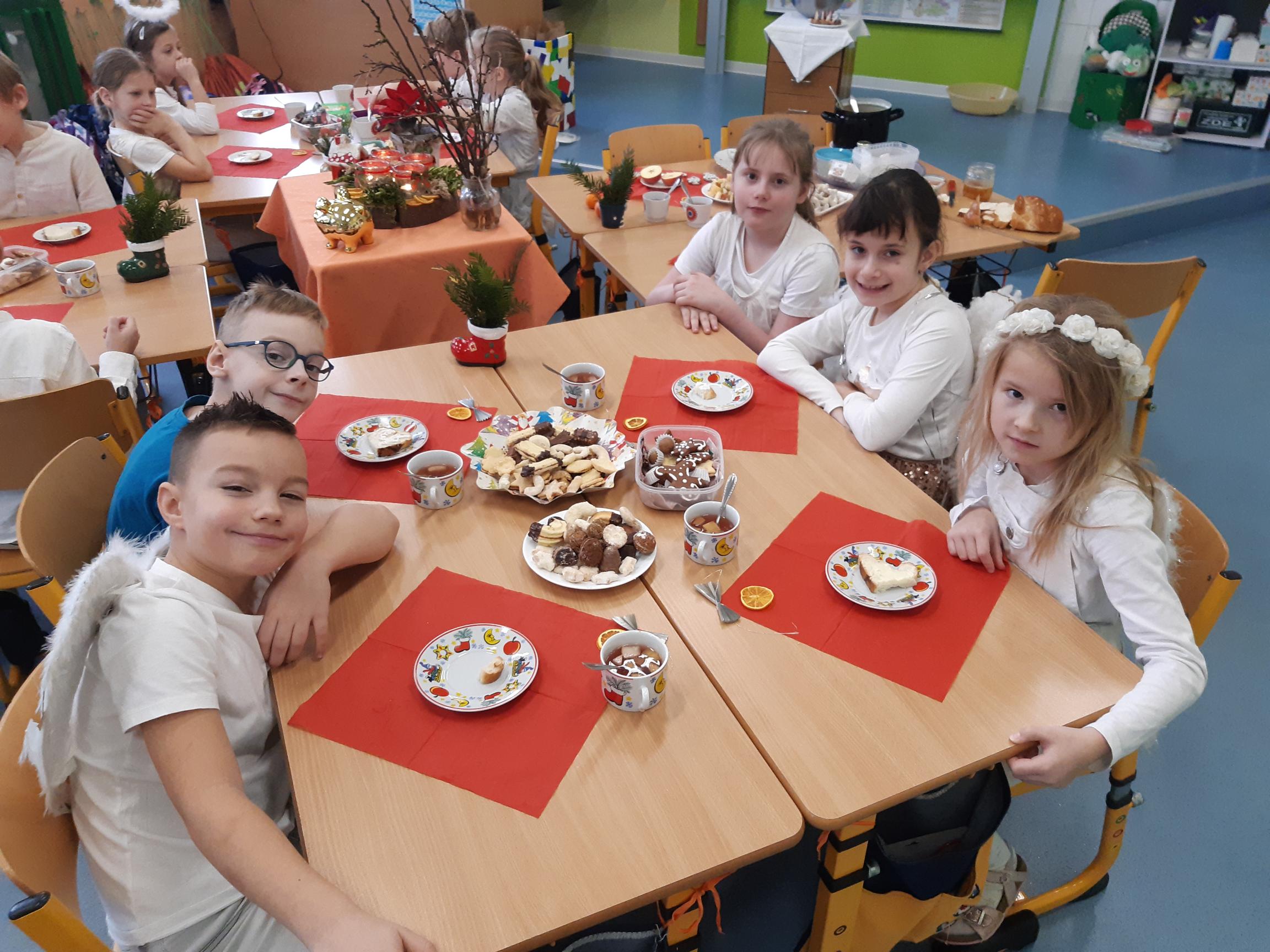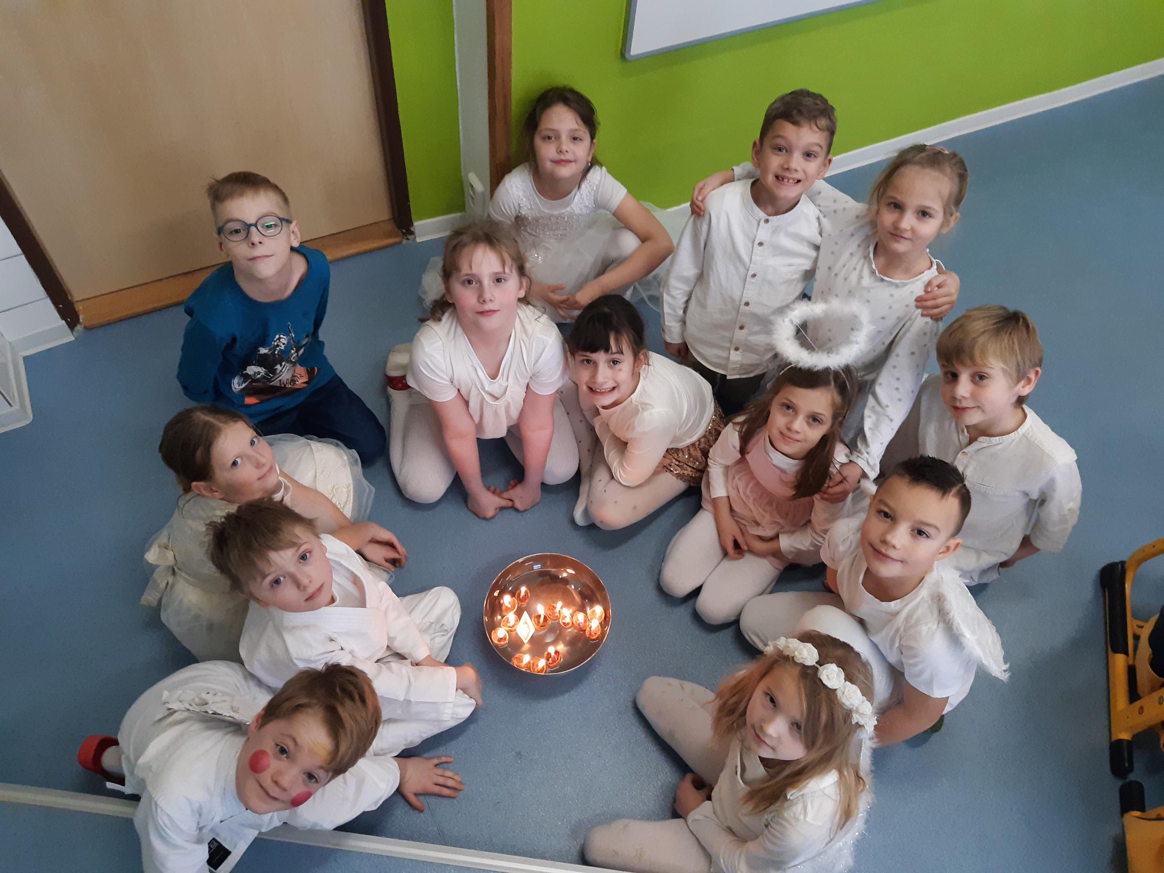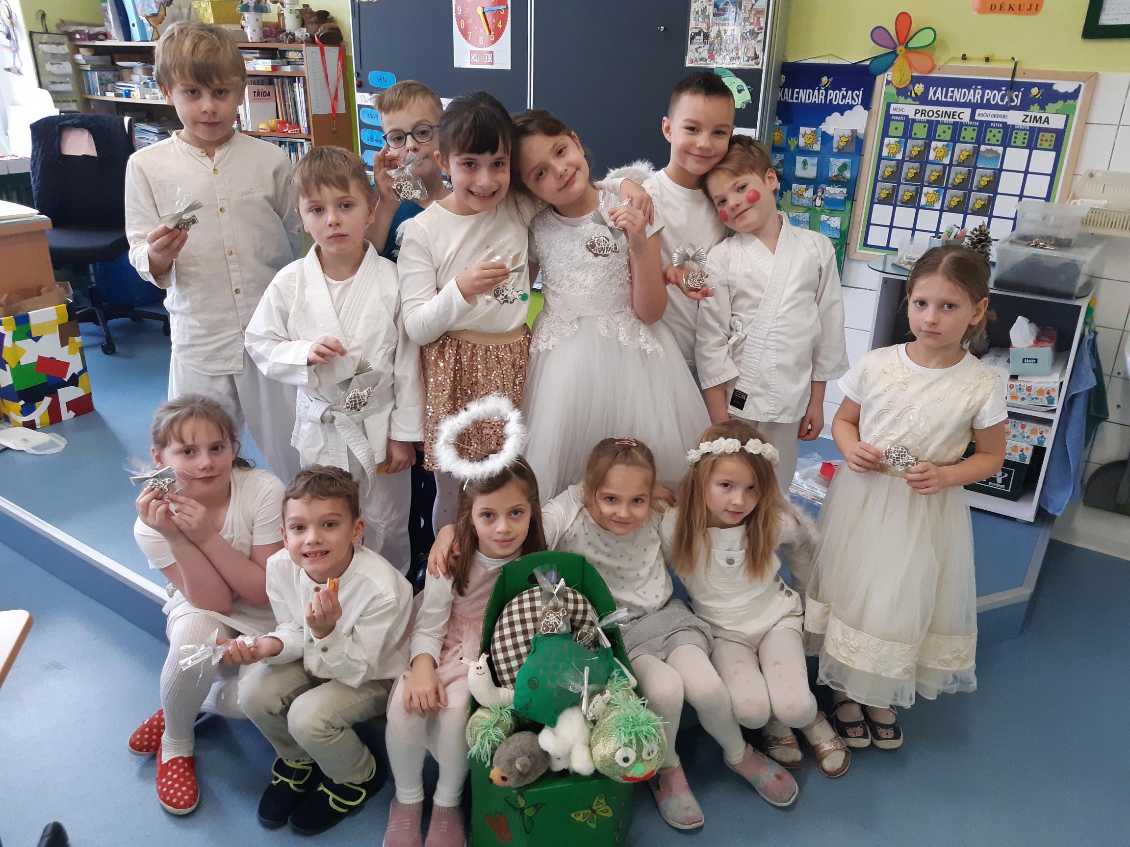 Poslední školní den v roce 2024 jsme si užili andělskou třídní besídku. Na ukončení prosincového putování jsme si ozdobili perníkovou rybičku. Zapálili jsme si adventní svícen, vykreslili další hvězdičku v adventním kalendáři. Pro štěstí jsme si rozkrojili jablíčko. Každý měl krásnou hvězdičku. Pouštěli jsme skořápkové lodičky. Ochutnali jsme vánoční cukroví a vánočku - suchou, s máslem, medem nebo cukrovou polevou. Ke svačině jsme si uvařili i vánoční punč. A pak již následovalo volání na Ježíška. Postupně jsme si rozdali dárky. Užili jsme si rozdávání, hádání, co najdeme v balíčku a radost z překvapení. Pěkně jsme se rozloučili s rokem 2024 a popřáli si hodně štěstí.