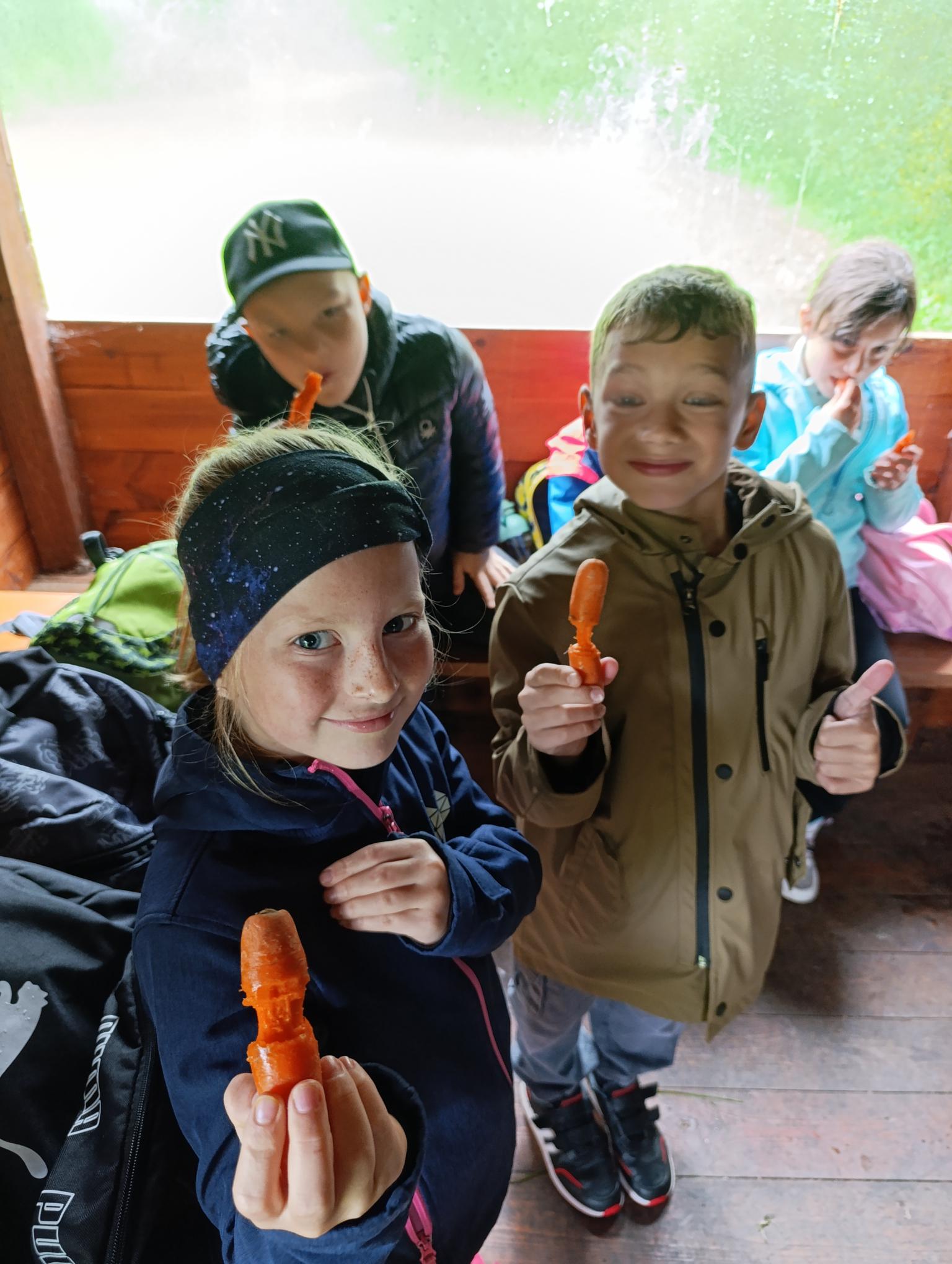 V pátek jsme odjeli do Třech Seker. I přes nepřízeň počasí jsme se vypravili k místnímu rybníku Sekera a Sekerka. S p. Dvořákovou jsme si povídali o životě bobrů a vyder. Hledali jsme jejich pobytová znamení. Viděli jsme bobří skluzavky, ohryzané stromy, hráze i bobří hrad. Mezi naše úlovky patřily i dva kozáci, malá ropucha a bruslařky. Svačinu jsme spojili s hrou na bobry - okousali jsme mrkev. Potom jsme si zahráli na „vydru“, která musela na jedno nadechnutí chytit co nejvíce ryb. V zahradě U nás doma jsme si prohlédli místní muzeum přírodnin od nás i ze světa. Společně jsme řadili informace k vodním živočichů, o kterých jsme si povídali. Prohlédli jsme si lebky, mohli jsme si pohladit i vycpanou vydru. Nakonec jsme si z větví postavili bobří hrad. Zjistili jsme ale, že bobři jsou mnohem lepší stavitelé.