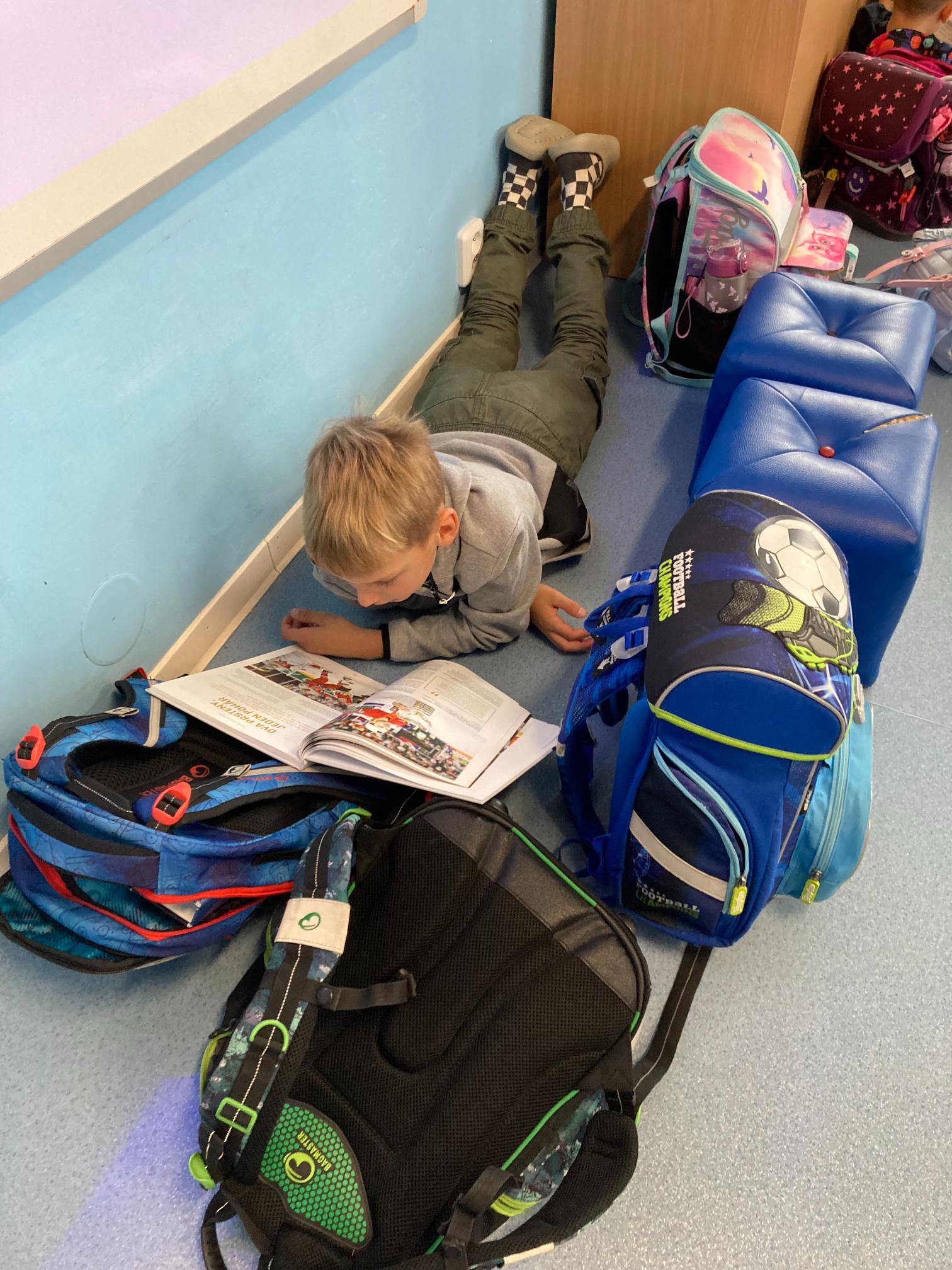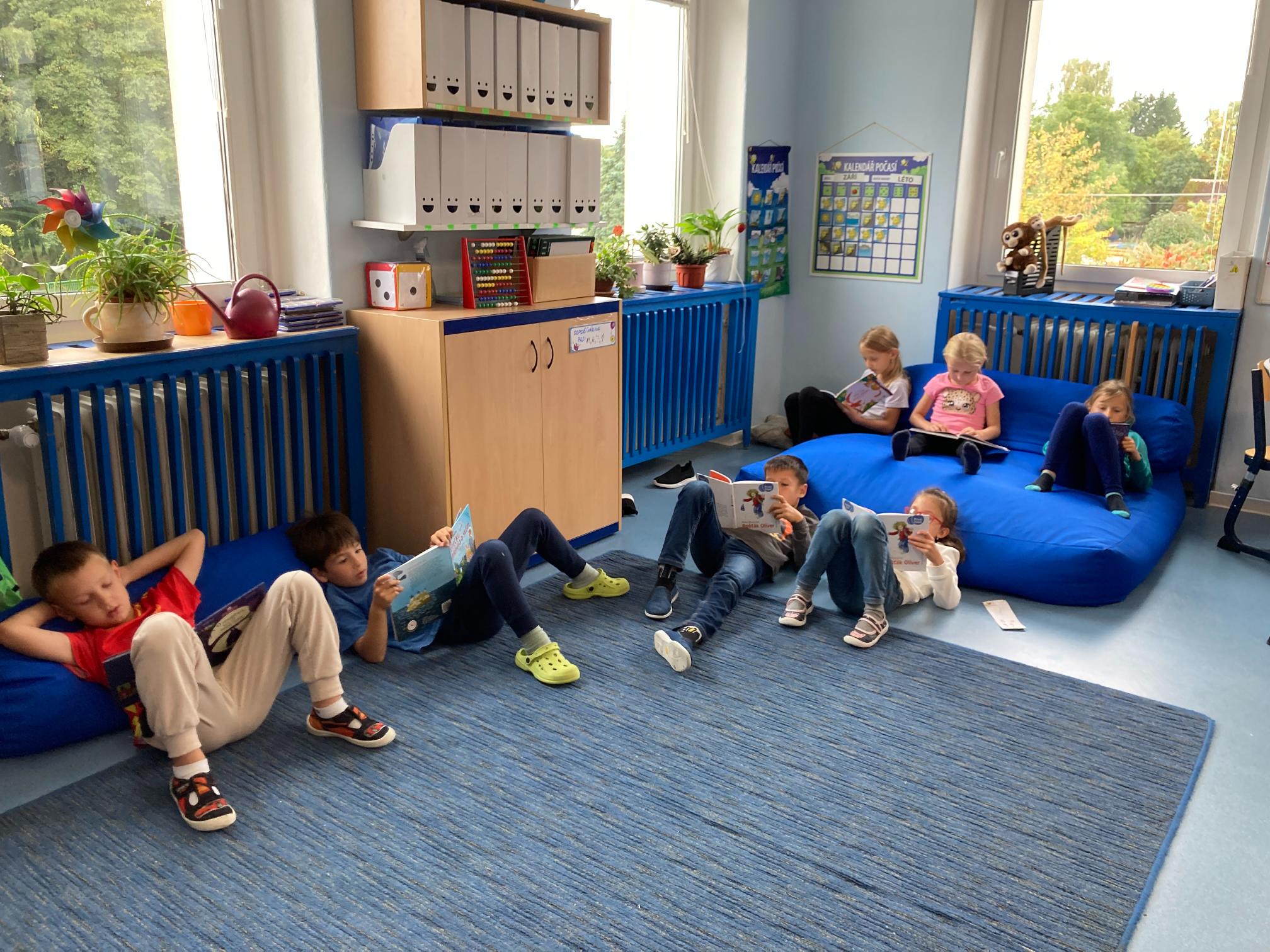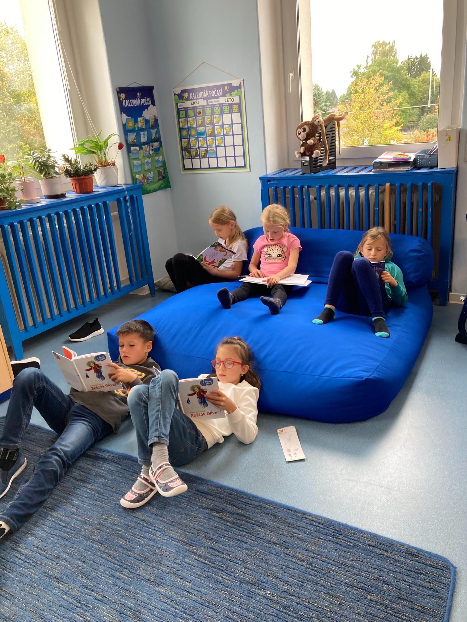 Naše první čtenářská dílna Každý žák si přinesl vlastní rozečtenou knížku, našel si ve třídě příjemné místo a 10 minut jsme četli. Děti byly tak soustředěné na čtení, že si ani nevšimly, že je fotím.
