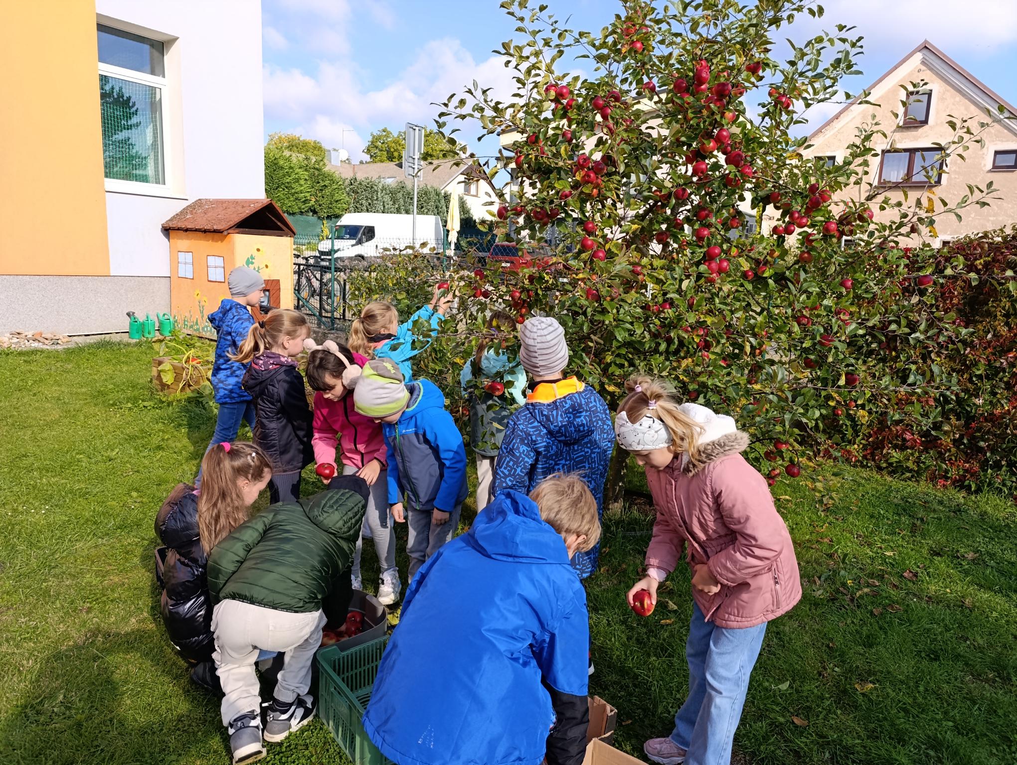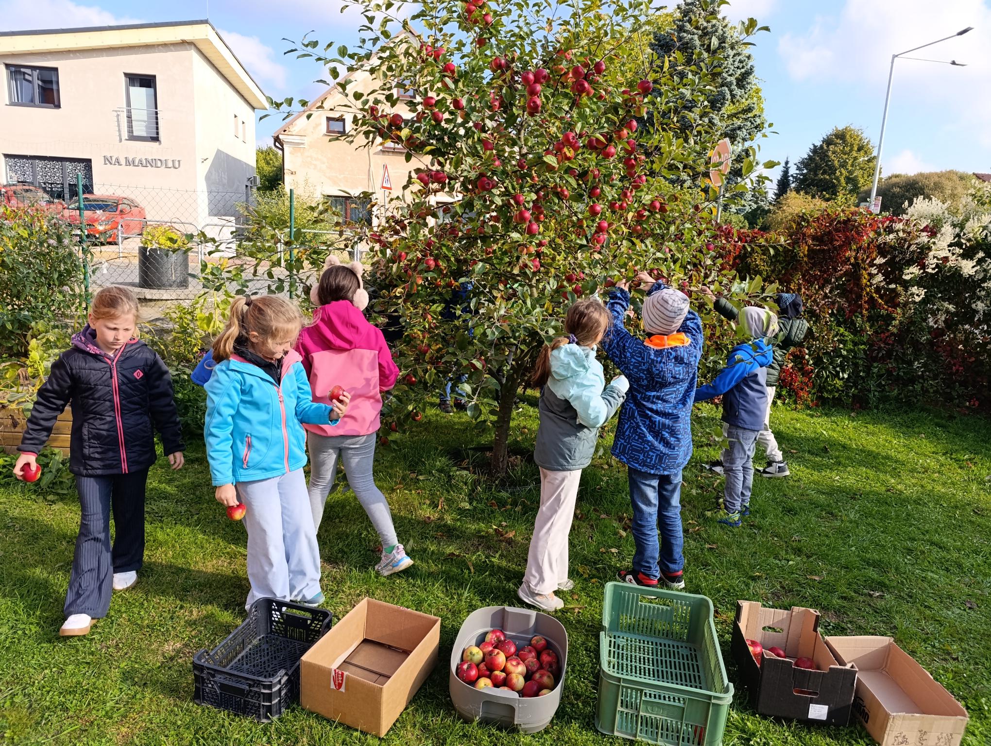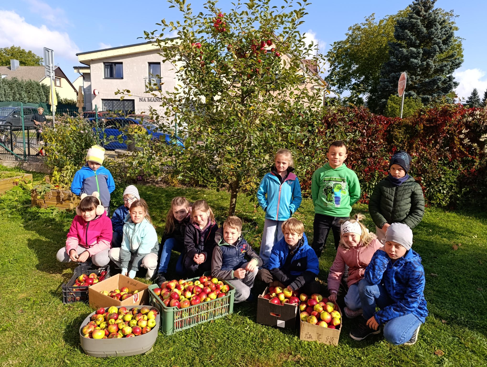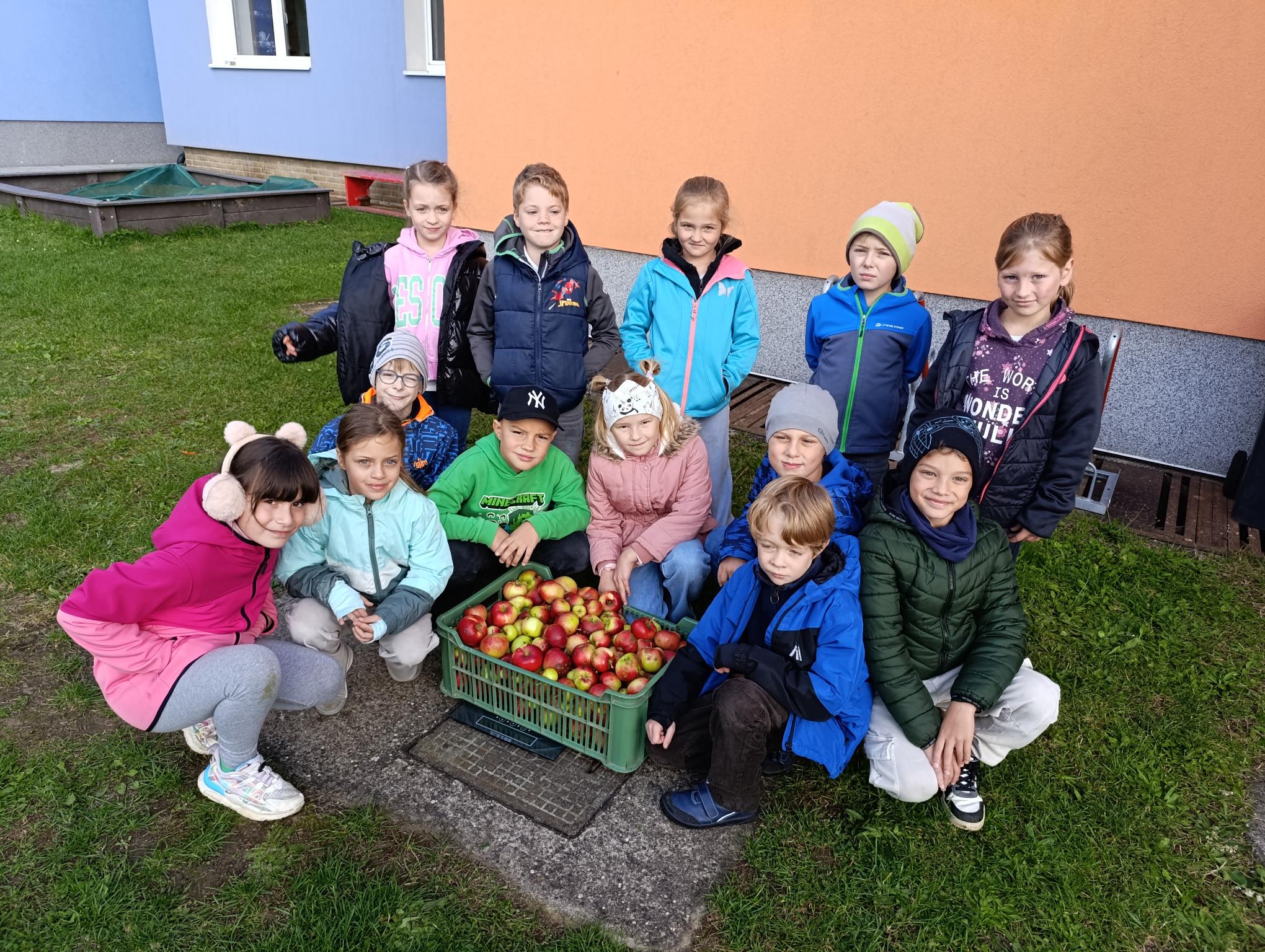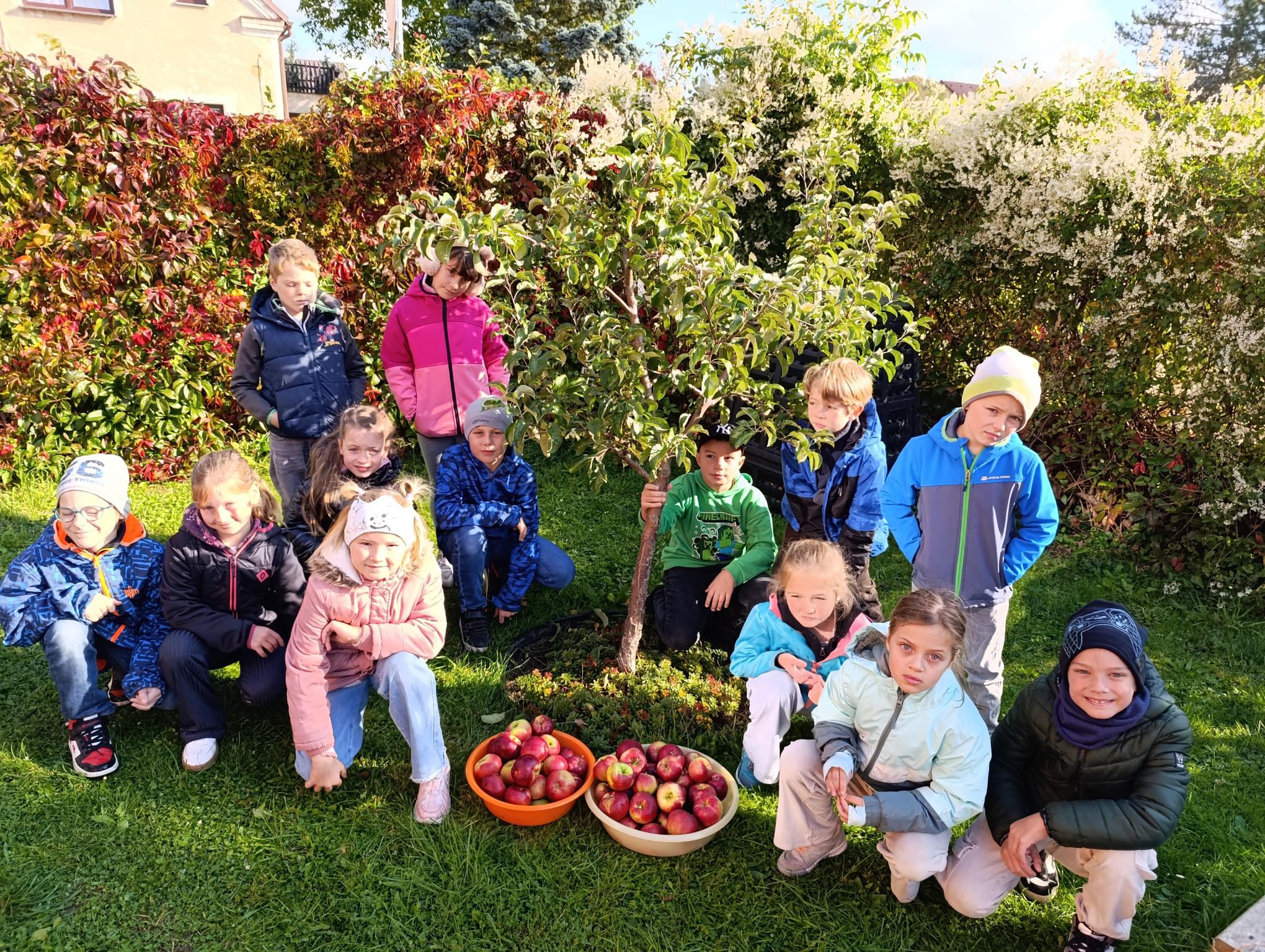 Počasí nám přálo a vrhli jsme se na sklizeň jablek na naší zahradě. Menší jabloň Karmína měla krásná tmavě červená jablka. Jablka jsme očesali a také zvážili. Letošní úroda byla celkem 70 kg. Všichni si na nich určitě pochutnáme. Jsou výborná.