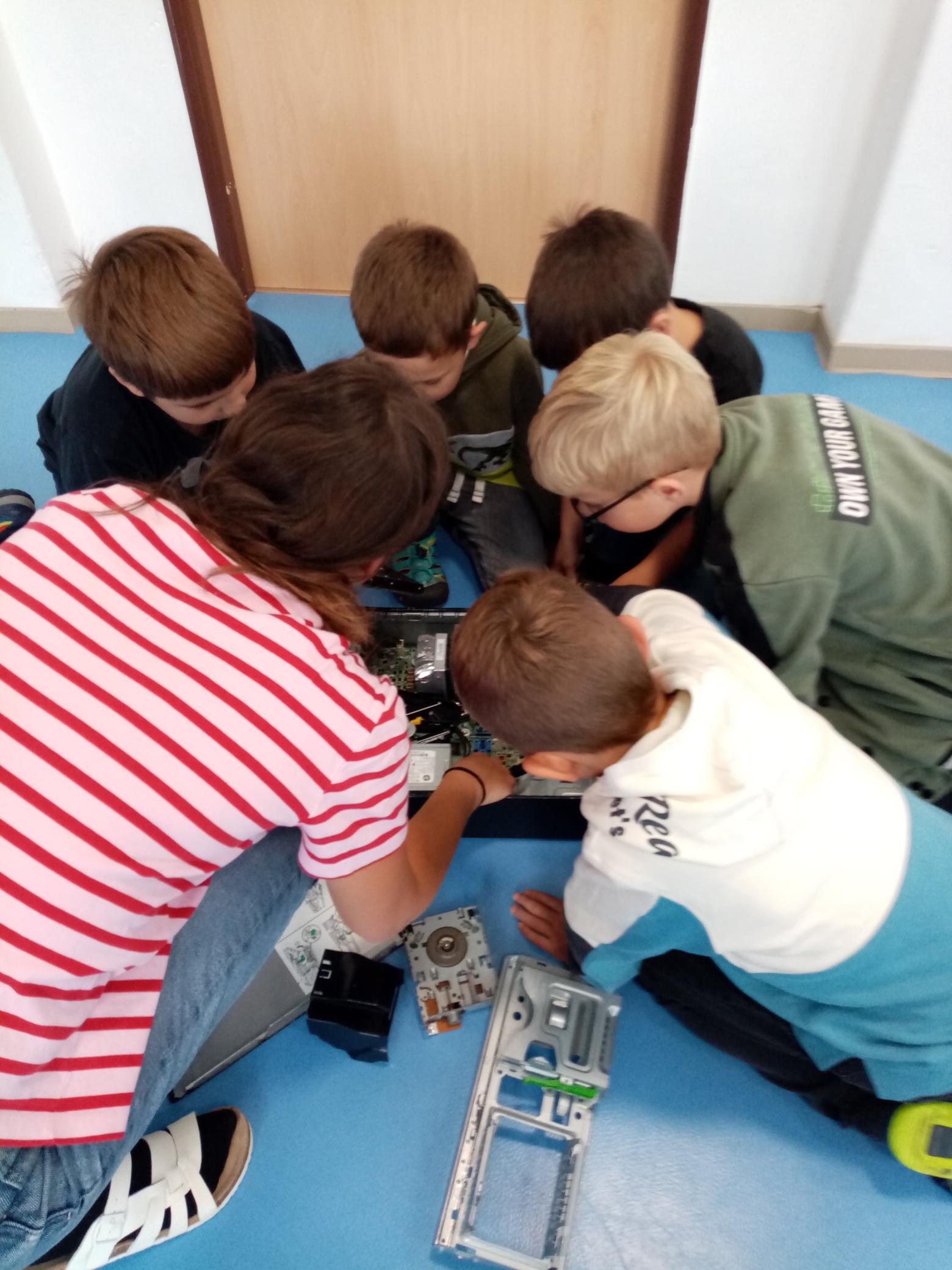 V pondělí 13. října naši školu navštívila lektorka z programu Recyklohraní aneb Ukliďme si svět s výukovým programem Recyklace hrou. Žáci si povídali o důležitosti třídění odpadu, jeho následném třídění a recyklaci. Třídění si děti prakticky vyzkoušely pomocí kartiček a maket kontejnerů. Mohly si také rozebrat model pračky, baterie a počítače.