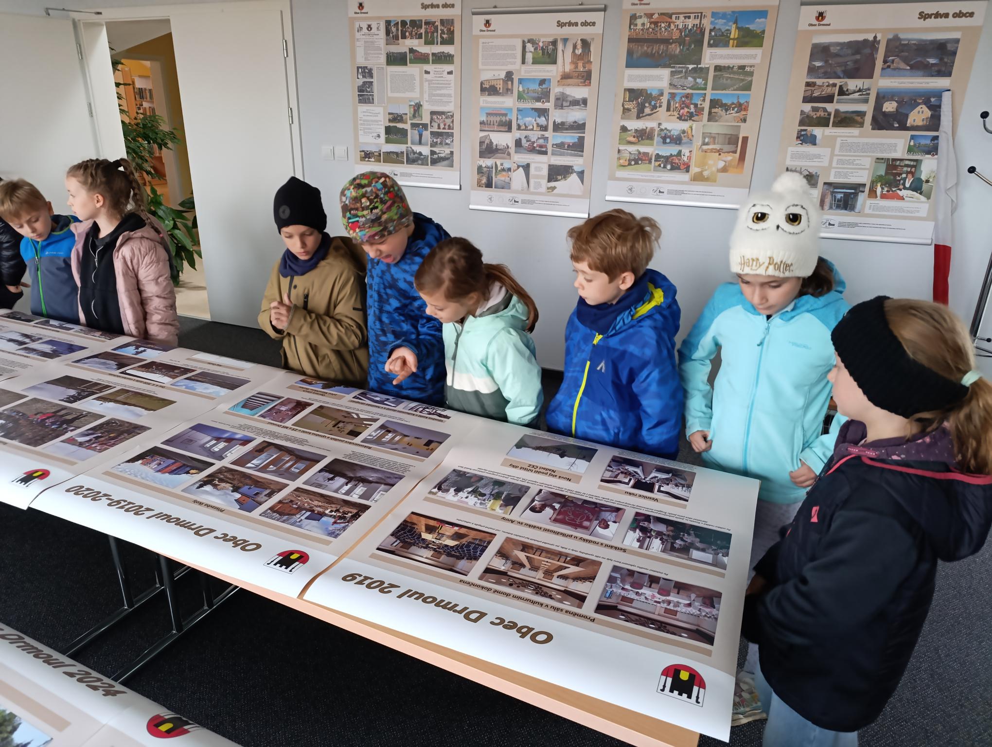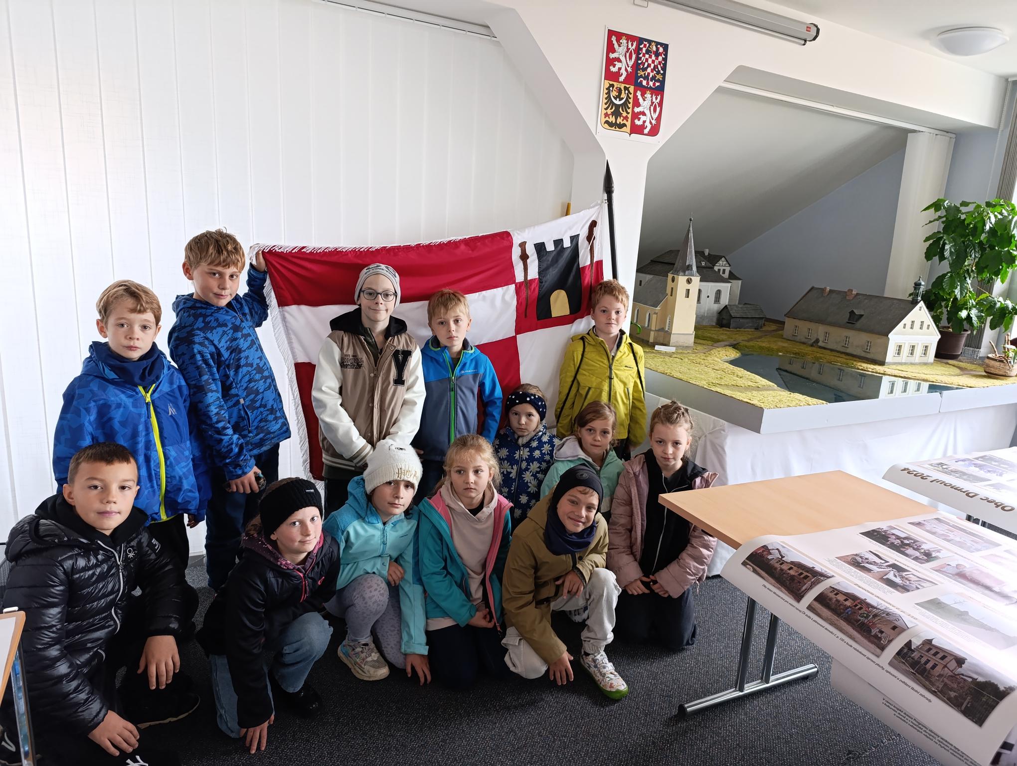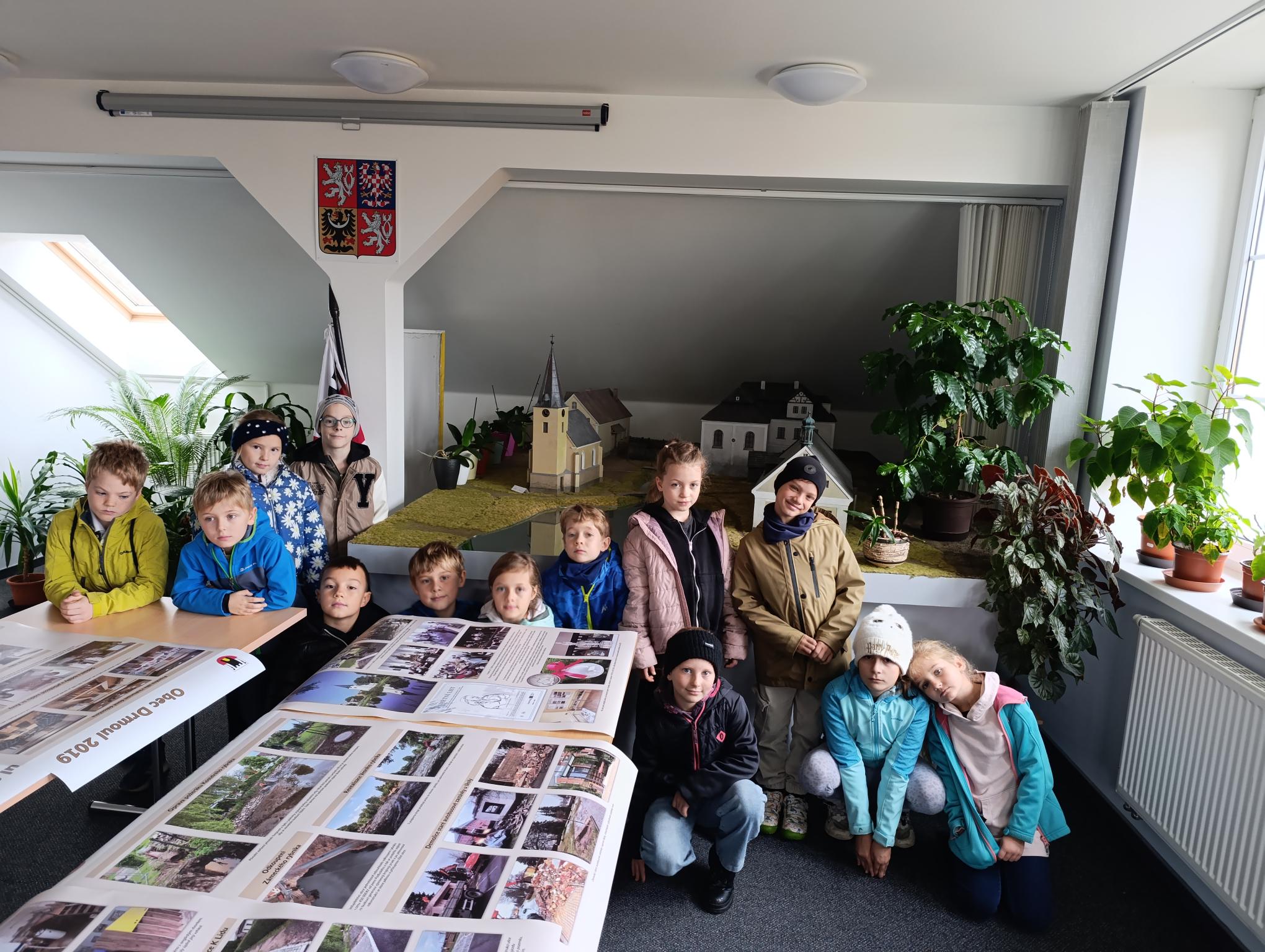 Dnes jsme navštívili obecní úřad. Povídali jsme si s p. starostou o řízení obce. Prohlédli jsme si obrazové panely o dění v obci, místní knihovnu. Zaujal nás model návsi, model bývalé cihelny i archeologické nálezy z okolí. Vyzkoušeli jsme si práci s kompasem a určování světových stran. Pro štěstí jsme na lípě objevili krásného pavouka křižáka.3