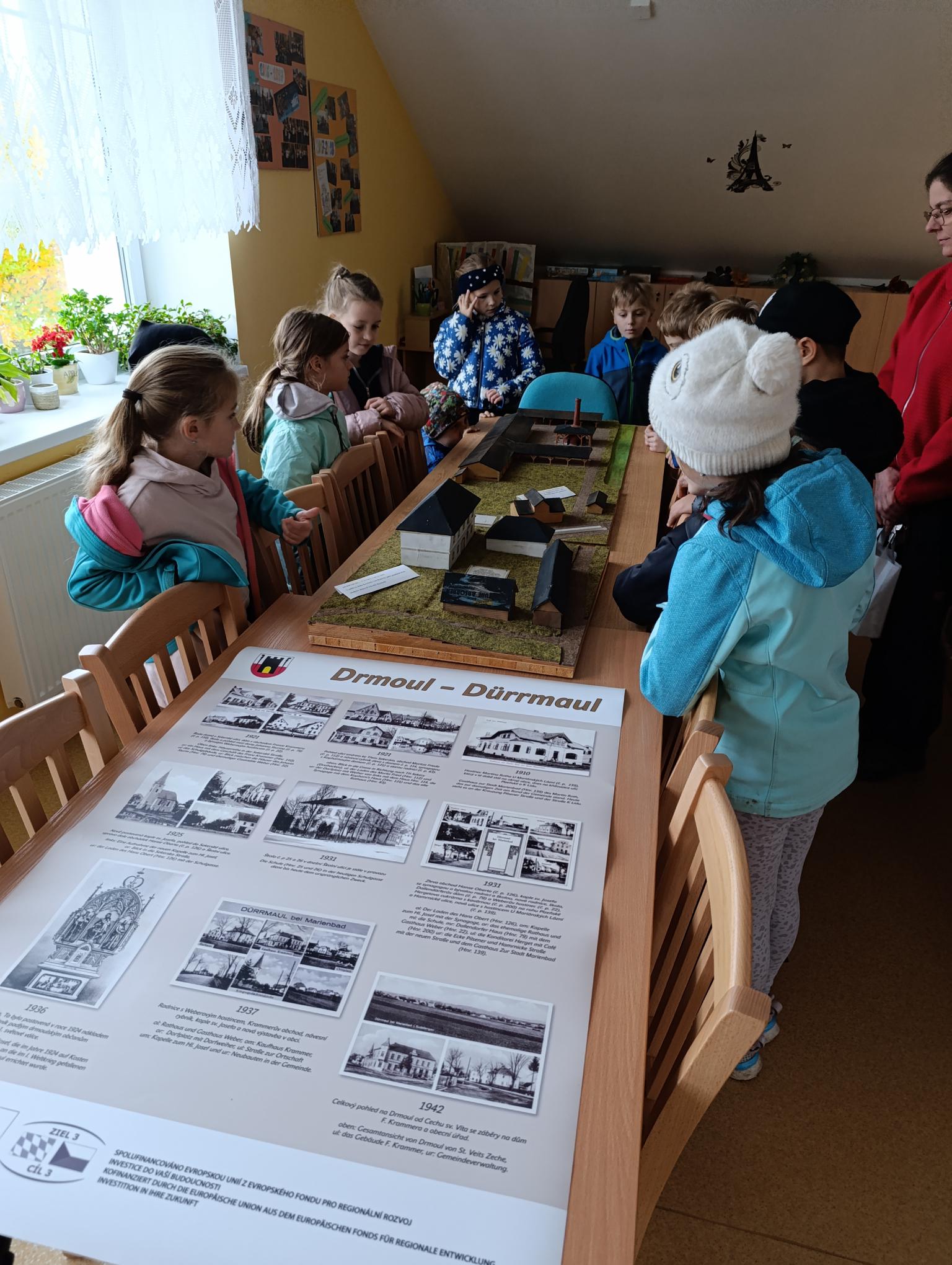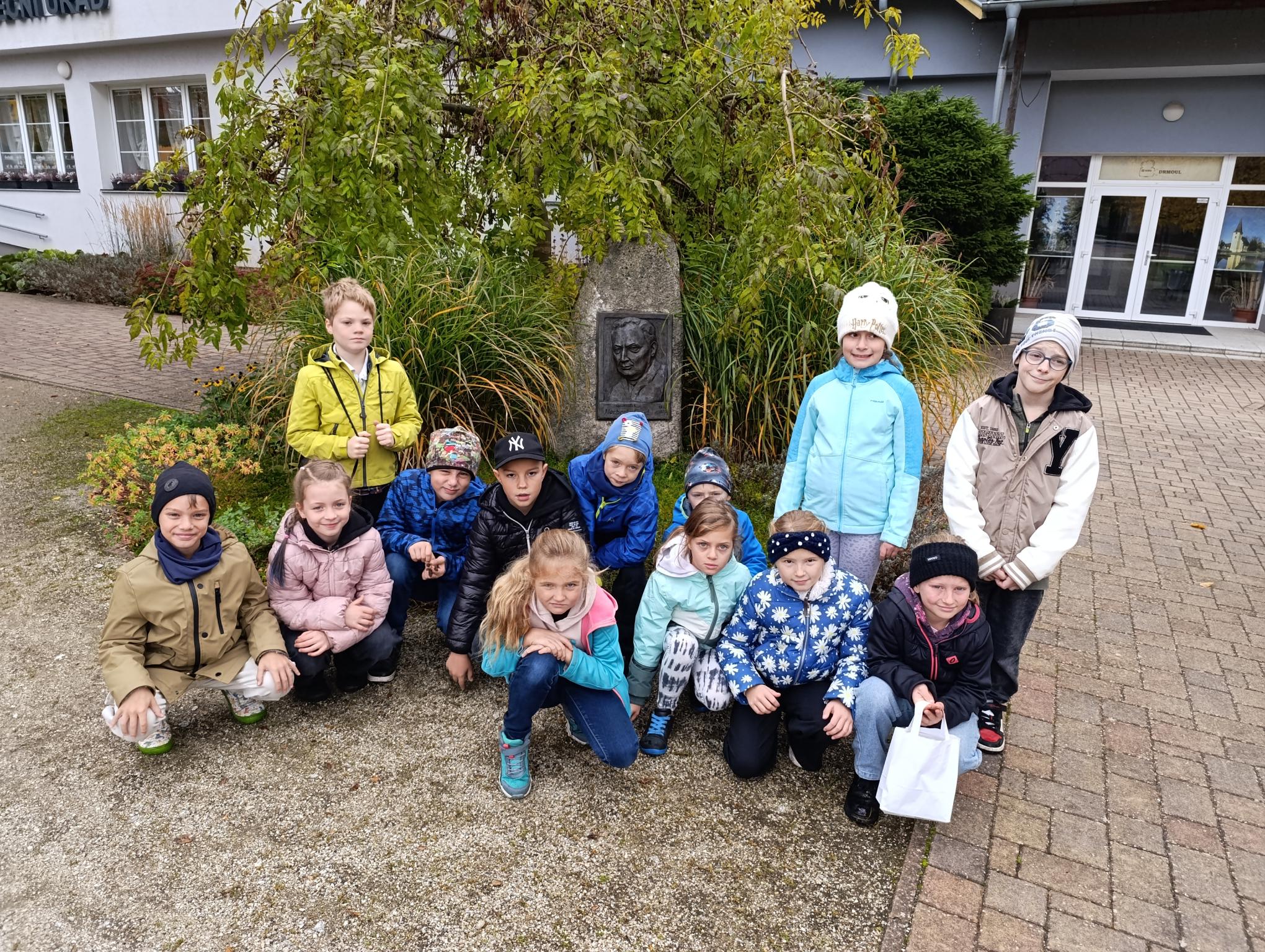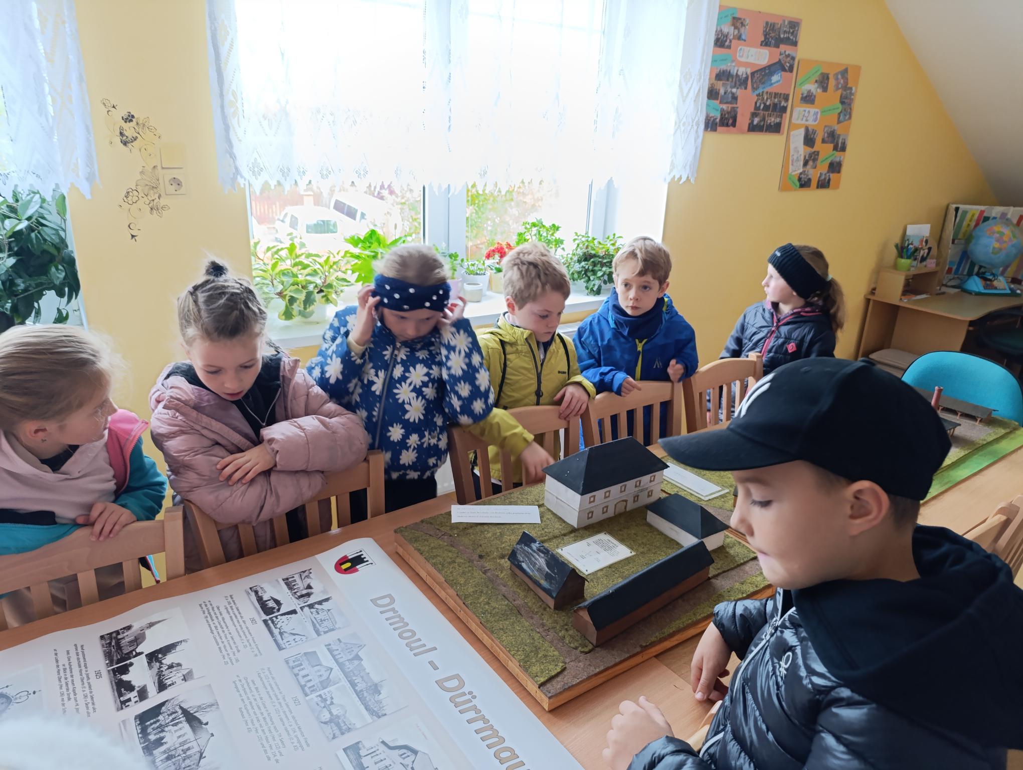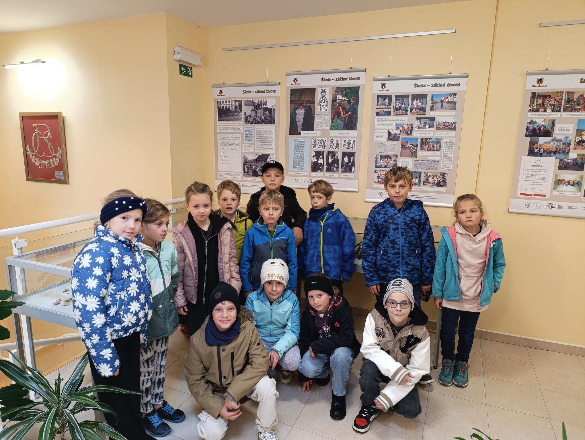 Dnes jsme navštívili obecní úřad. Povídali jsme si s p. starostou o řízení obce. Prohlédli jsme si obrazové panely o dění v obci, místní knihovnu. Zaujal nás model návsi, model bývalé cihelny i archeologické nálezy z okolí. Vyzkoušeli jsme si práci s kompasem a určování světových stran. Pro štěstí jsme na lípě objevili krásného pavouka křižáka.3