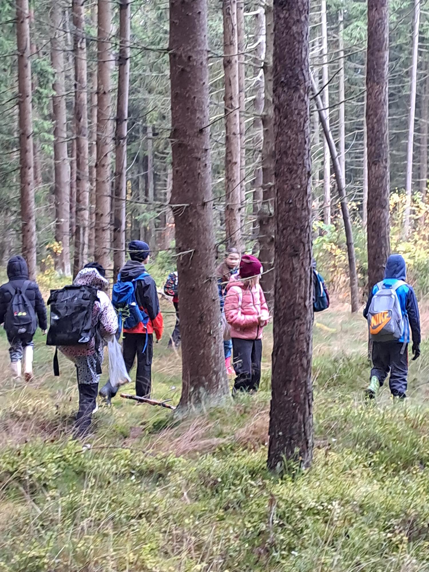 Páťáci vyrazili na procházku do lesa. Užili jsme si sběr hub, běhání, hraní her. Když jsme se vrátili do školy, pochutnali jsme si na bábovce, kterou upekla paní učitelka. Báječně jsme si užili společné chvíle.