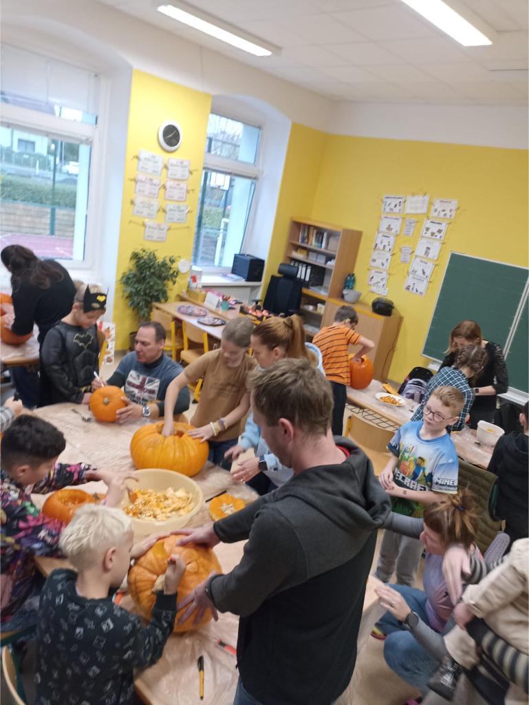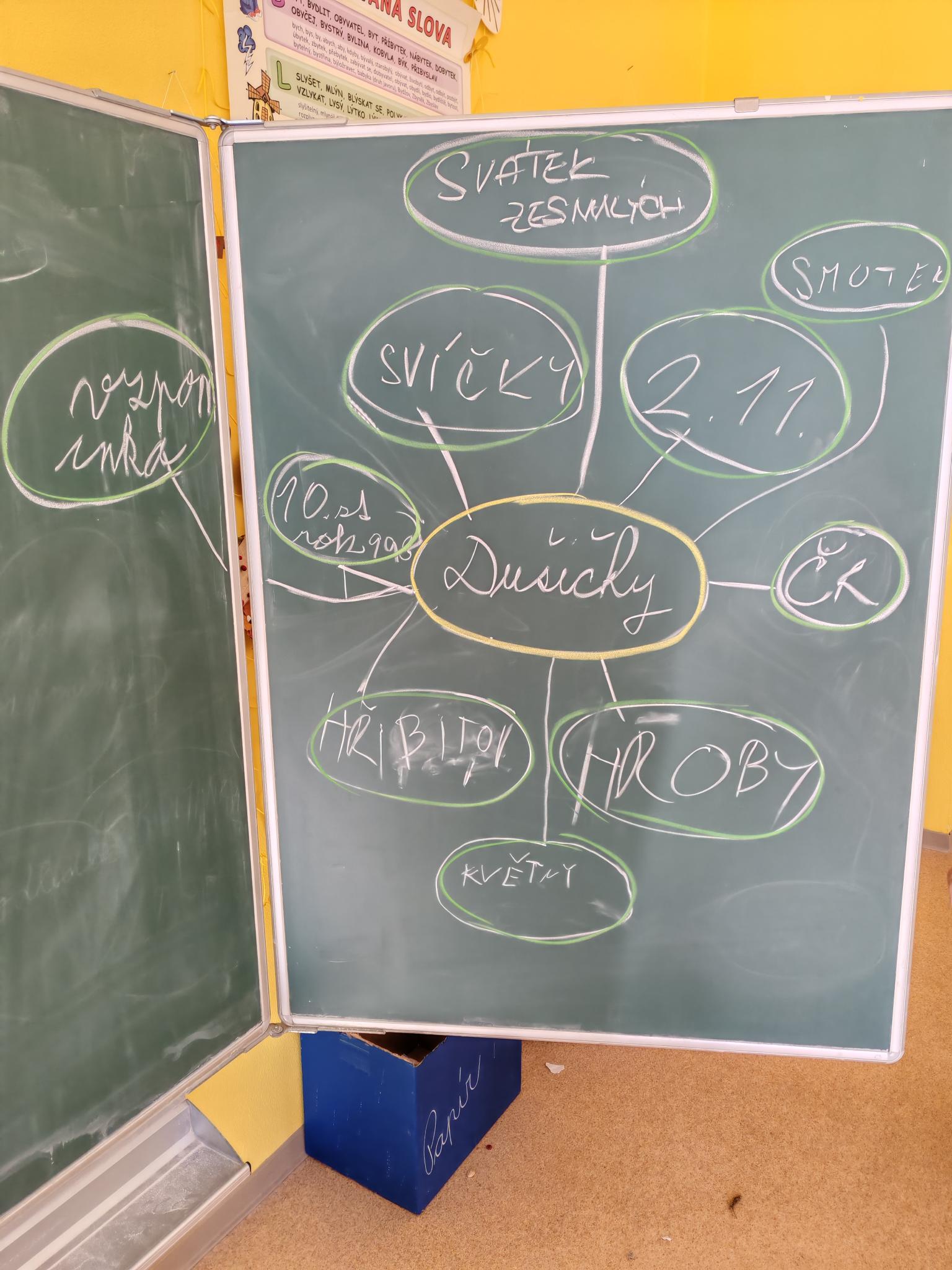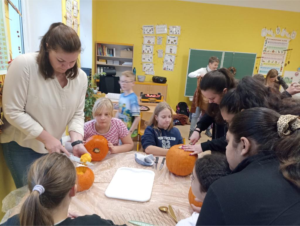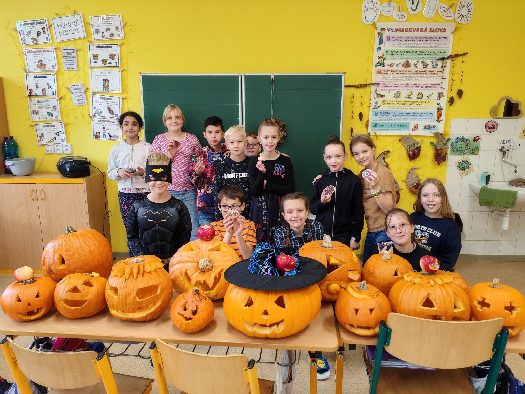 Halloween jsme oslavili 30. 10. společným dlabáním dýní s rodiči. V matematice jsme plnili halloweenské úkoly. V rámci informatiky jsme si na tabletech nalezli informace na téma "Halloween X Dušičky." K tématu jsme si na tabuli vytvořili dvě myšlenkové mapy. Den jsme si užili v kostýmech a pochutnávali si na strašidelných dobrotách.