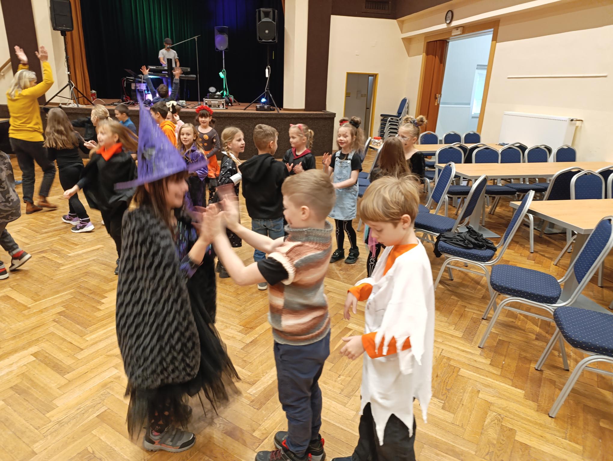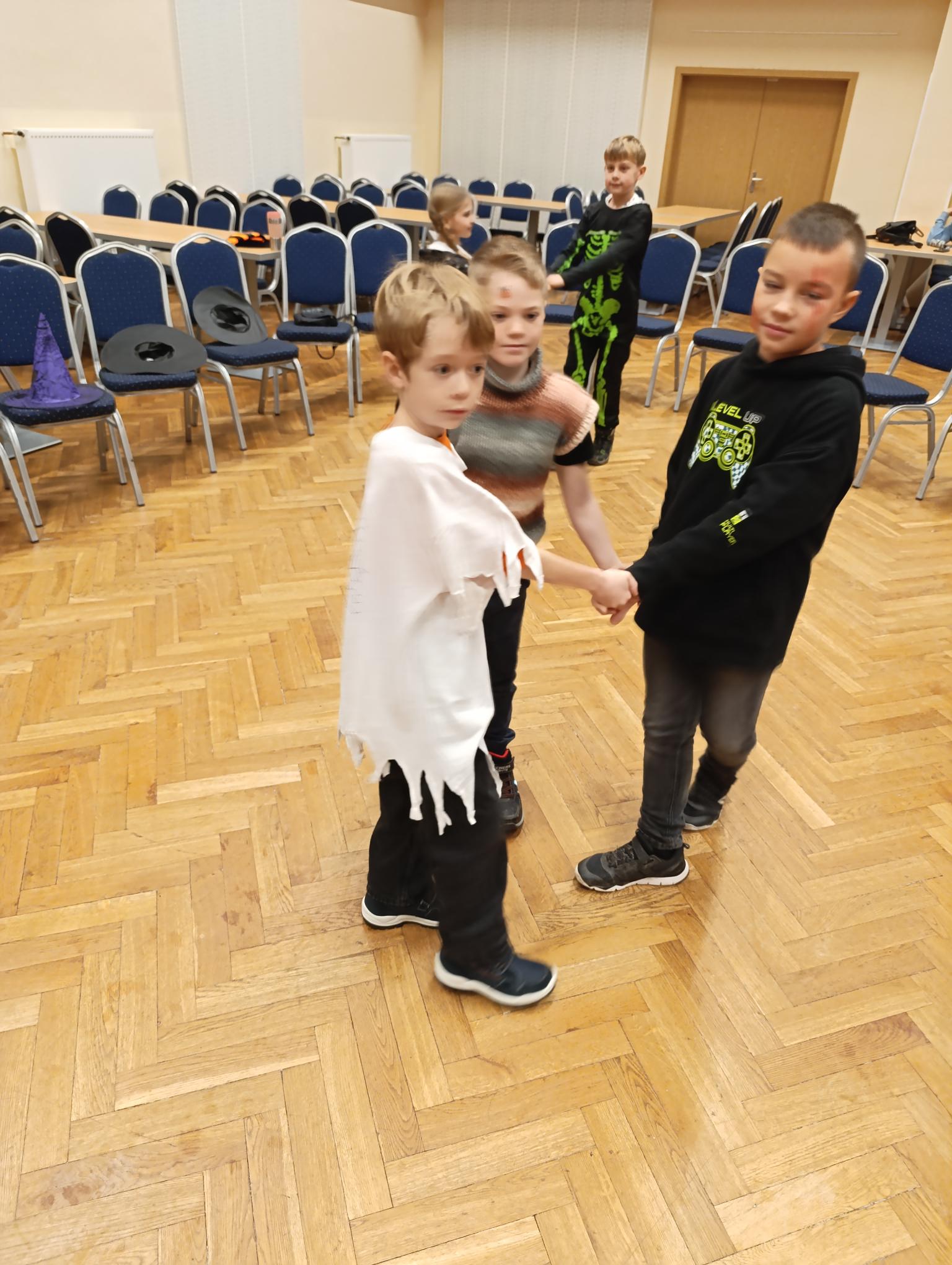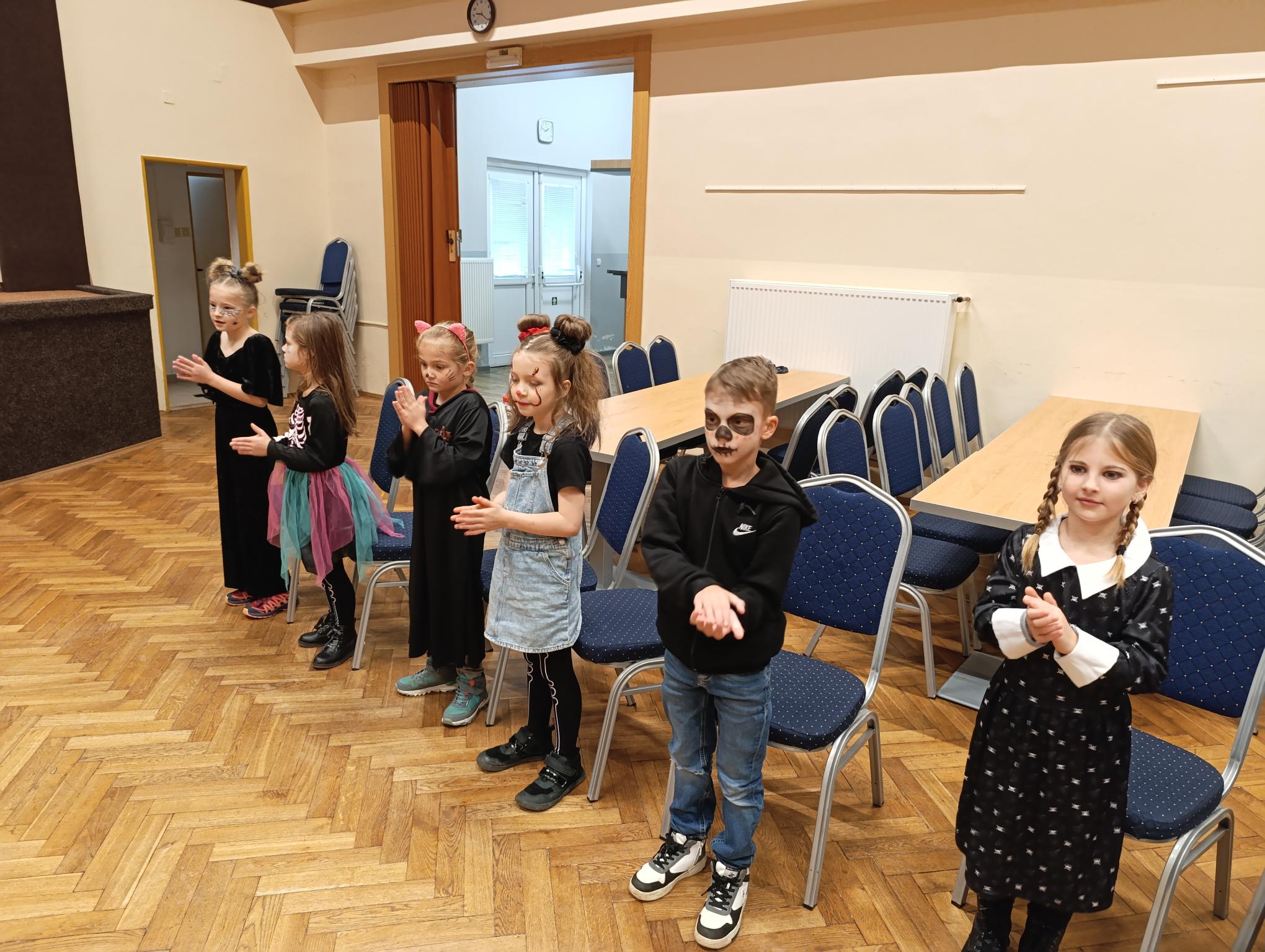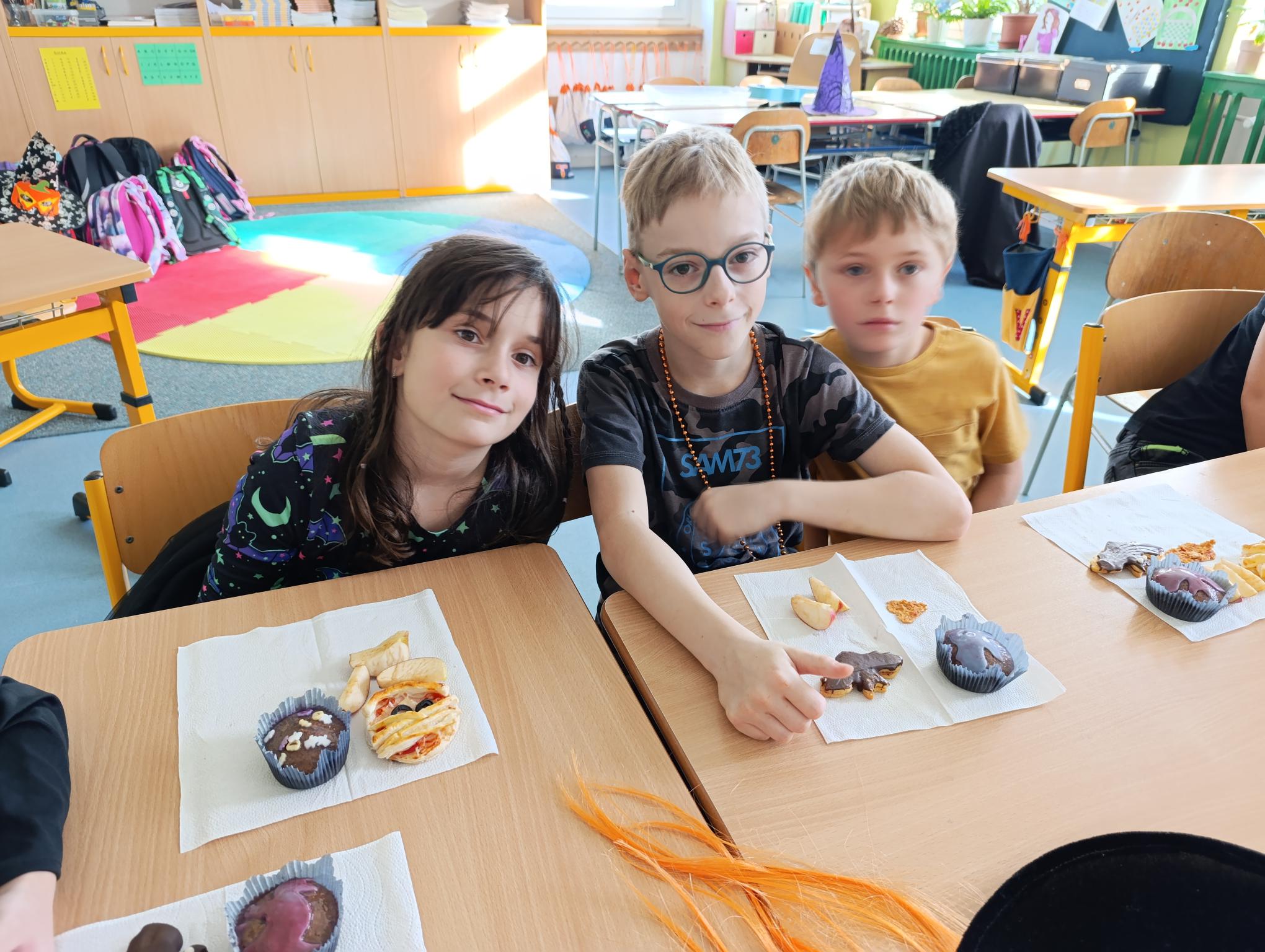 Tematický den DUCHAŘENÍ jsme zahájili rytmickou show v sále KD. Zatančili jsme si, soutěžíli, motali mumie. Ve třídě jsme se potom s pomocí rodičů pustili do dlabání a vyrobili jsme dýňové lampy. Opět se nám moc povedly. Po práci odměna - užili jsme si malou hostinu: muffiny, halloweenské cukroví a pizzy, jablečné trhance a jablíčka z naší zahrady. Děkujeme maminkám!!! Pak jsme si dokončili malé papírové lampičky, do kterých jsme si schovali drobné sladkosti, opět dárek jedné z maminek. Abychom se dozvěděli historii svátku Halloween, připravili jsme si zašifrovaný text a hledali jsme odpovědi na otázky. Pomocí počítání jsme vyluštili jména rodiny Bubáčkových. Nakonec jsme si připomněli český svátek Dušičky