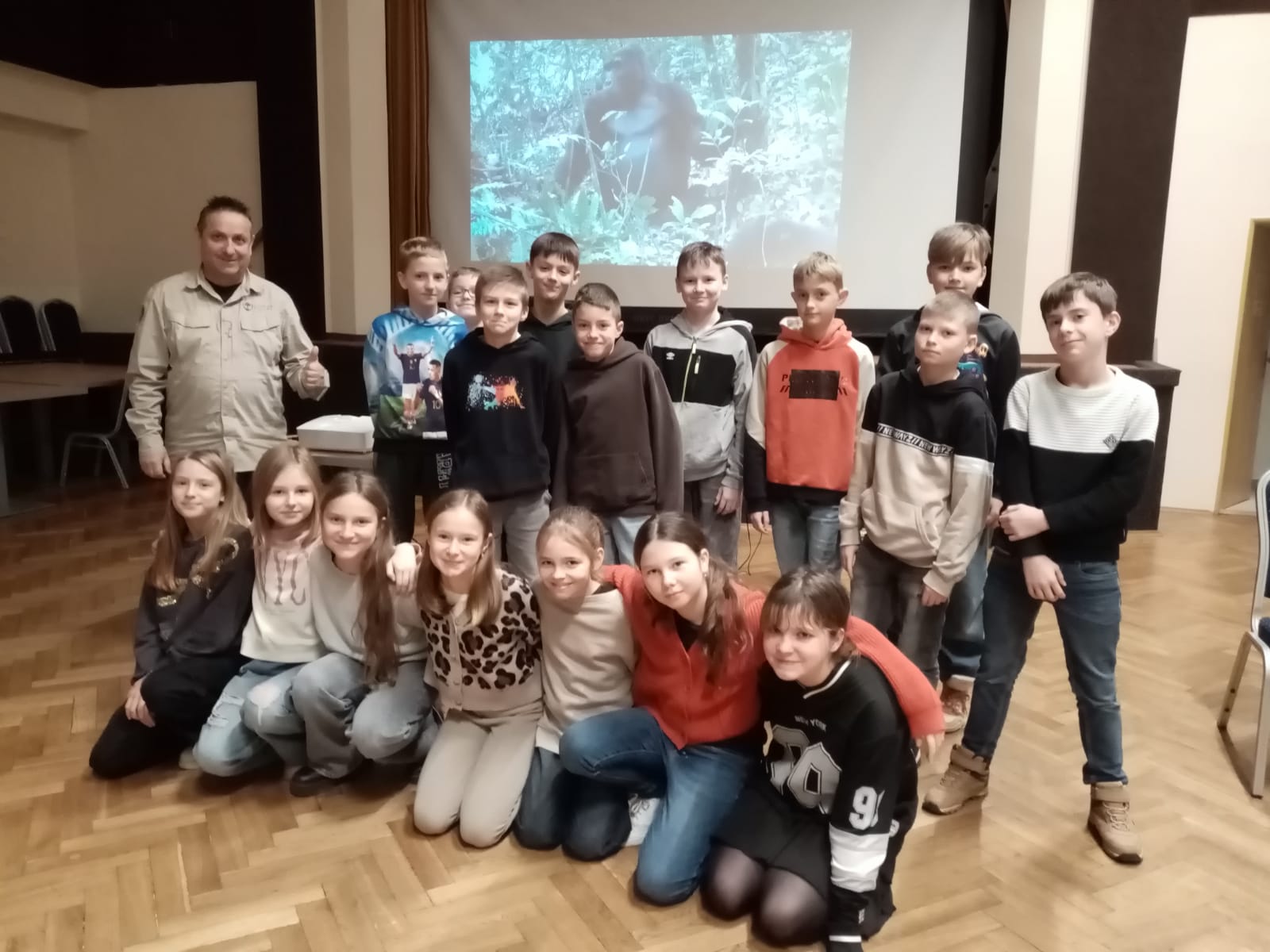 Mezinárodní monitorovací program Oko Země se zaměřuje na ochranu chráněných živočichů a jejich monitorování přímo v terénu. Pan Coubal si pro nejmladší školáky připravil přednášku s videoprojekcí o střídání 4 ročních období. Děti sledovaly změny v přírodě, jak se chovají zvířata. Druháci a třeťáci shlédli film o ochraně Karpat. Díky malému osídleni tohoto pohoří, zde žije spousta zvířat. Viděli zástupce býložravců, všežravců, největší psovitou šelmu – vlka, největší kočkovitou šelmu - rysa ostrovida i naši největší šelmu – medvěda hnědého, kteří žiji v Karpatech. Čtvrťáci a páťáci shlédli film o gorilách. Dozvěděli jsme se spoustu zajímavostí: Proč je nebezpečné zakrmování medvědů, především na Slovensku. To způsobuje problémy s jejich pohybem. Medvěd cítí potravu na 7 km. Nejvíce divokých koček žije u Karlových Varů v Doupovských horách. Liška je užitečná, protože za rok sní až 3000 hrabošů.
