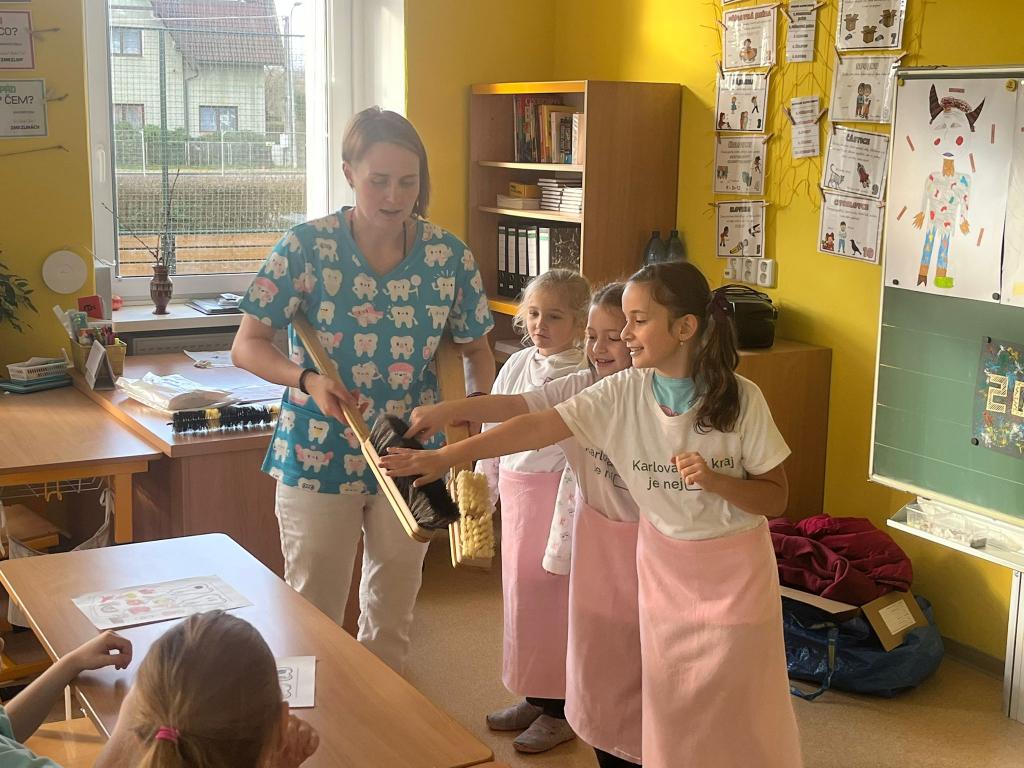 V dnešní lekci jsme si prakticky vyzkoušeli, jak používat zubní kartáček, mezizubní kartáček a mezizubní nit.