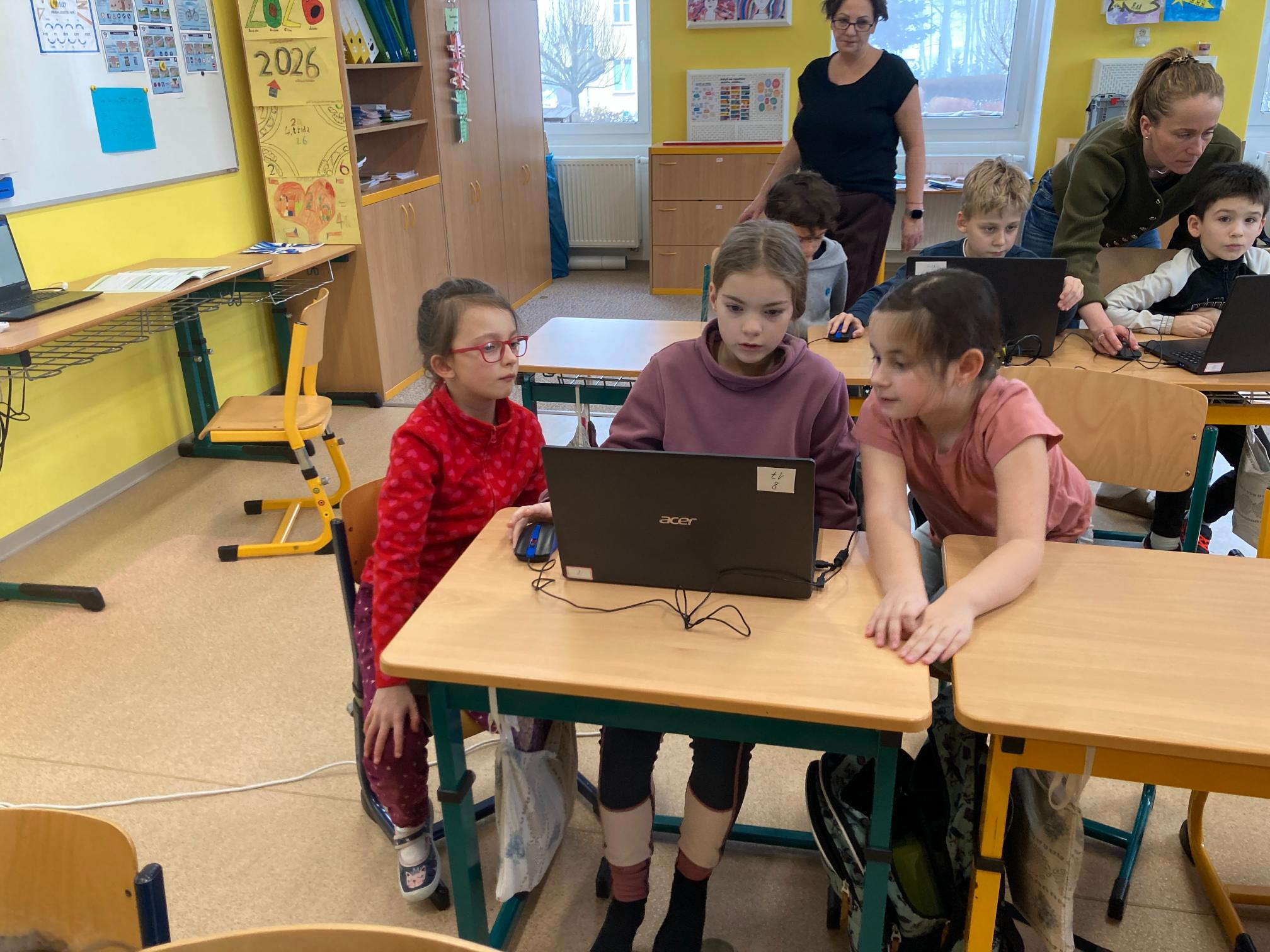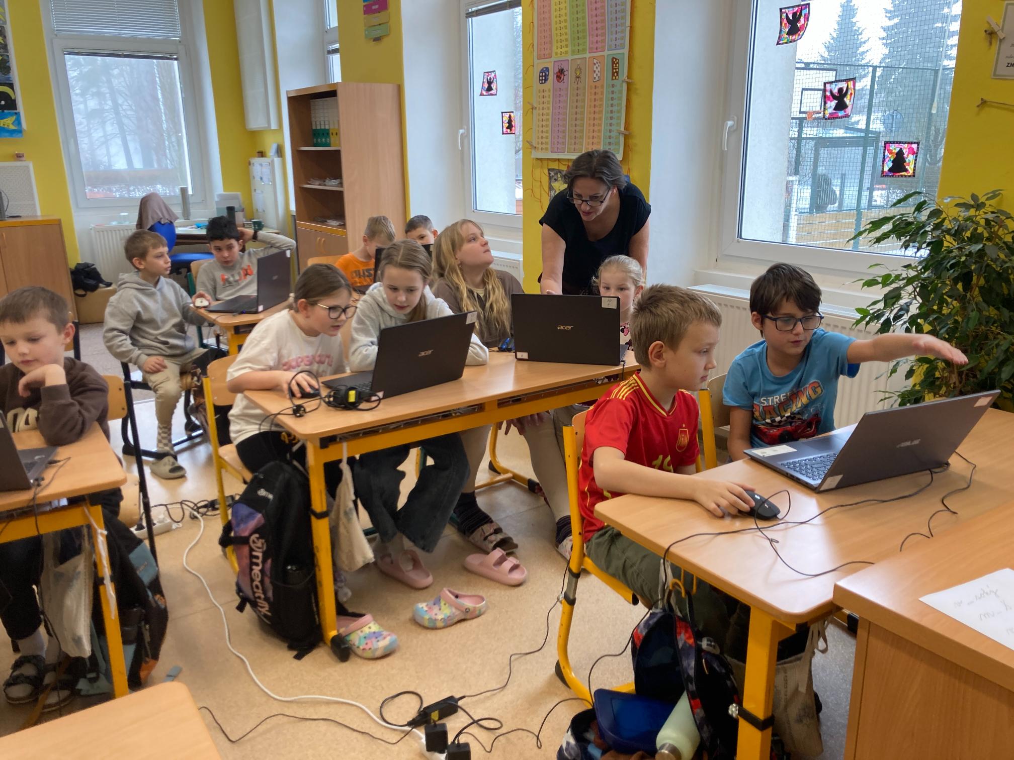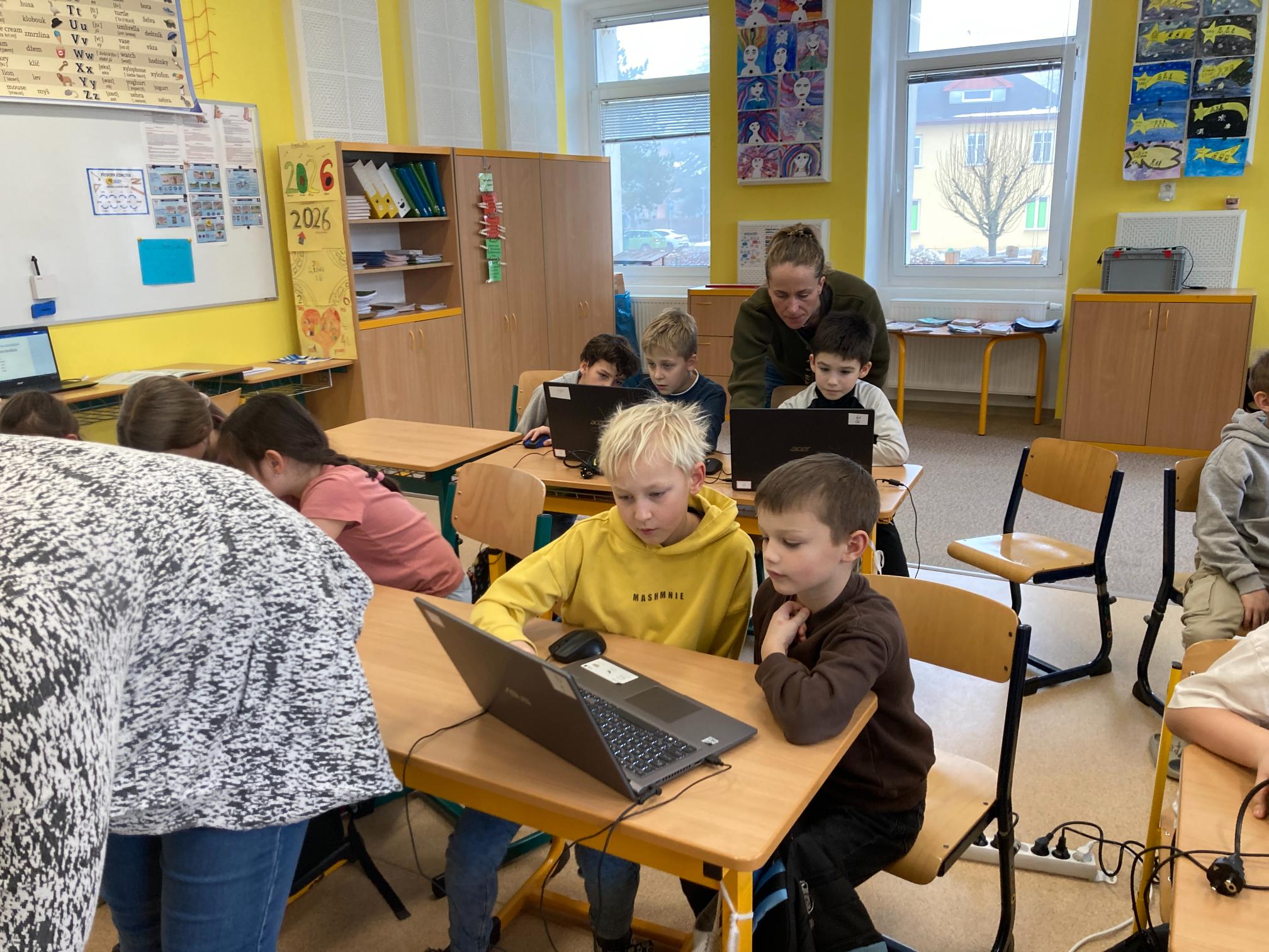 V rámci společné hodiny proběhlo vrstevnické učení, při kterém se žáci 2. třídy za pomoci žáků 4. třídy seznamovali s počítačovou klávesnicí a některými jejími základními funkcemi. Starší žáci mladším ochotně vysvětlovali práci s notebooky, pomáhali jim s orientací na klávesnici a podporovali je při plnění jednoduchých úkolů. Společná hodina přispěla k rozvoji digitálních dovedností, vzájemné spolupráce a pozitivních vztahů mezi třídami.