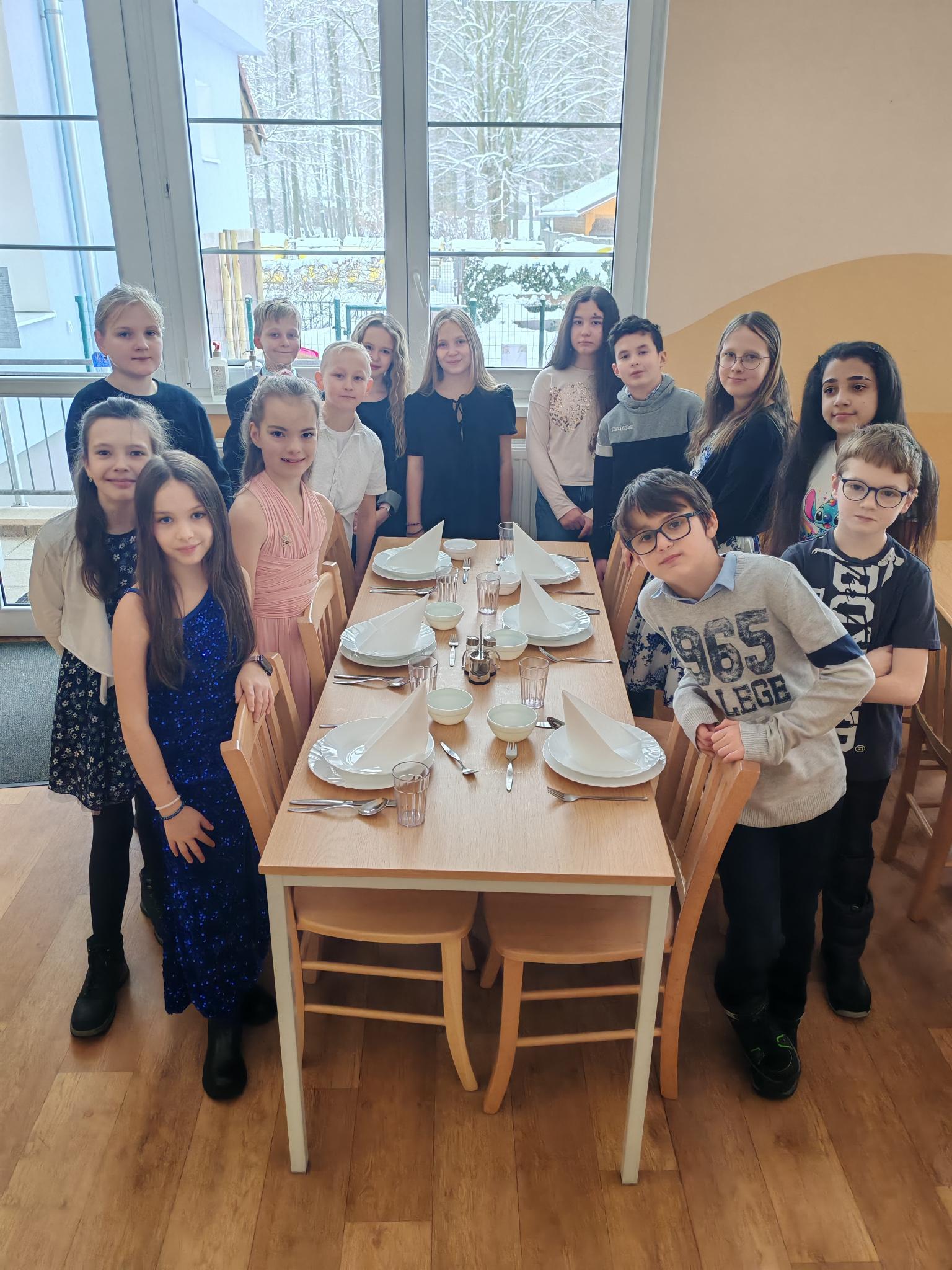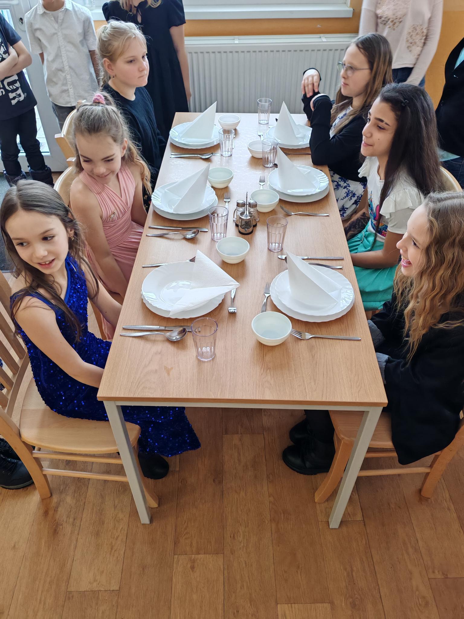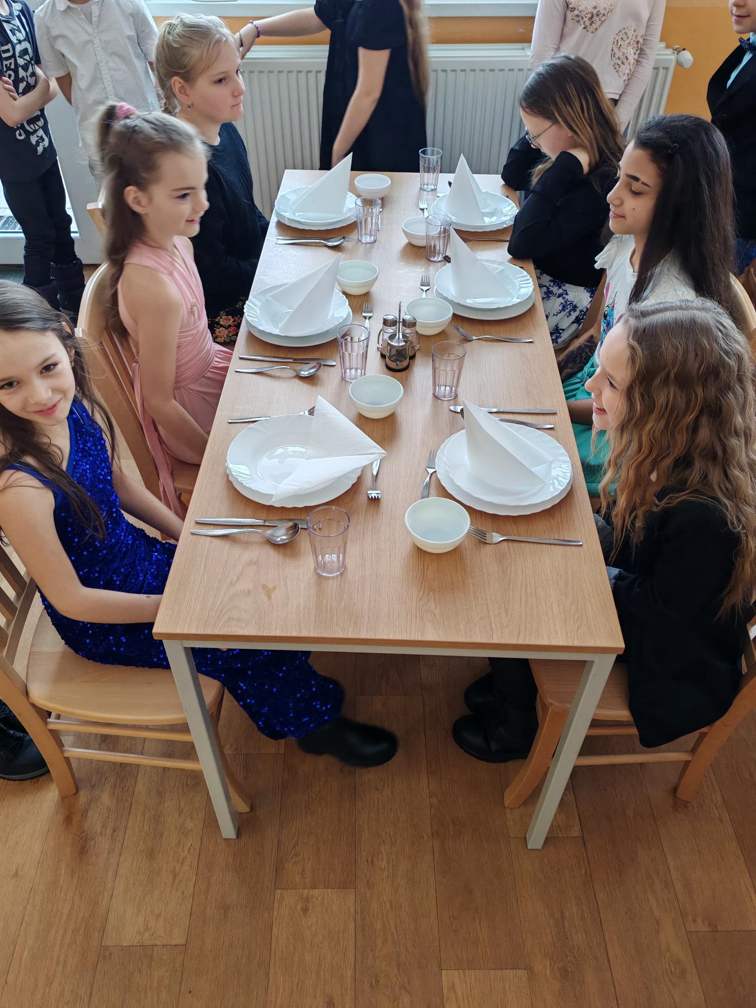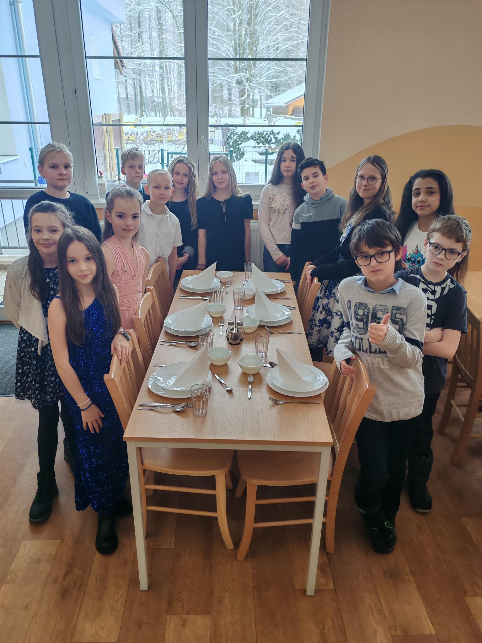 Ve čtvrtek 29. 1. 2026 jsme se slavnostně oblékli a věnovali se etiketě a zásadám slušného chování - například stolování, tanci a pravidlům ve společnosti. Během dne jsme se dozvěděli několik nových informací. Na konci dne jsme si rozdali pololetní vysvědčení se vzkazem od paní učitelky.